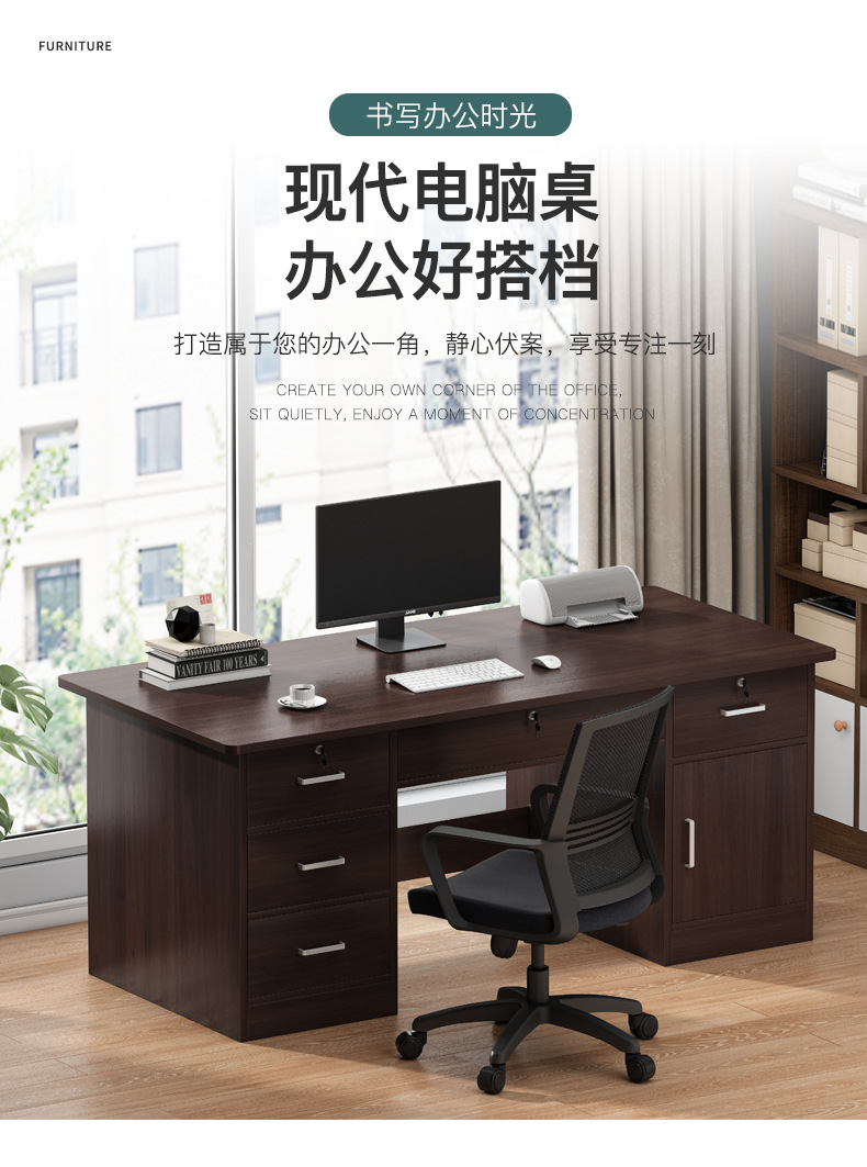컴퓨터 책상 데스크탑 홈 오피스 책상과 의자 서랍이 있는 심플하고 모던한 직원용 싱글 오피스 테이블 Tω