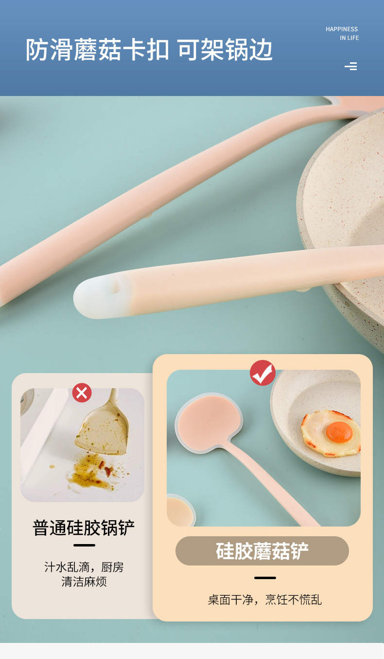 국경 간 실리콘 주걱 가정용 붙지 않는 냄비 고온 방지 주방 용품 수프 스푼 버섯 요리 주걱 프라이팬 주걱 주방스토어 가기