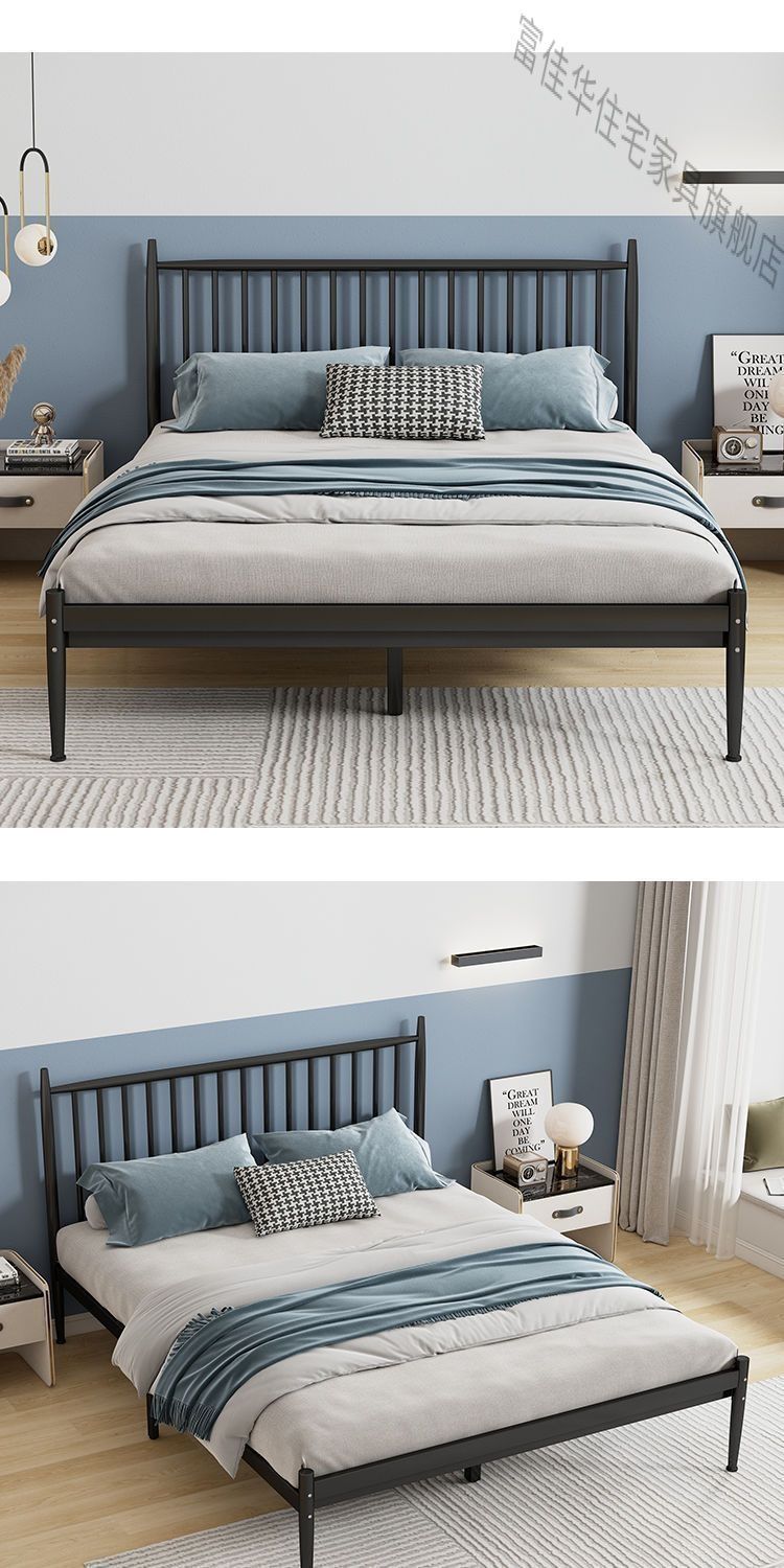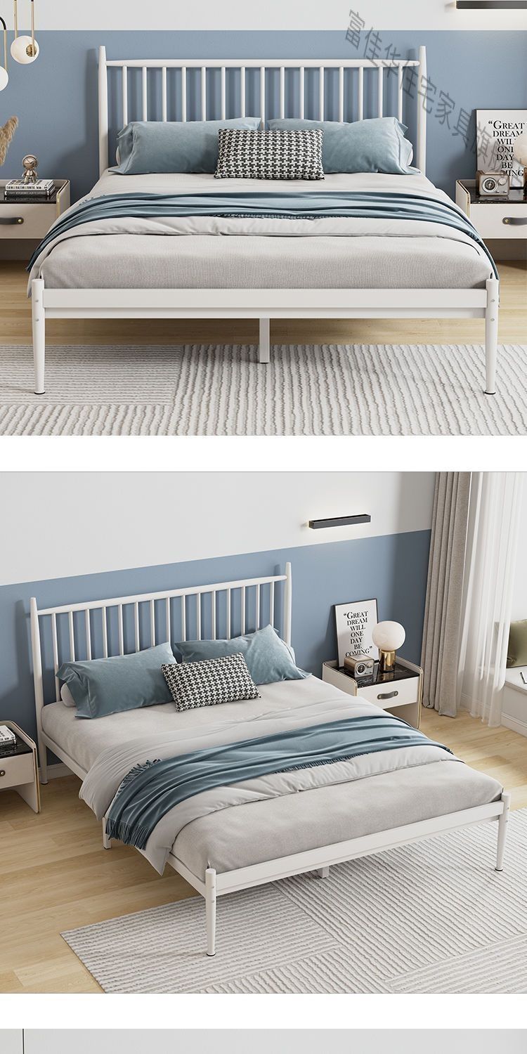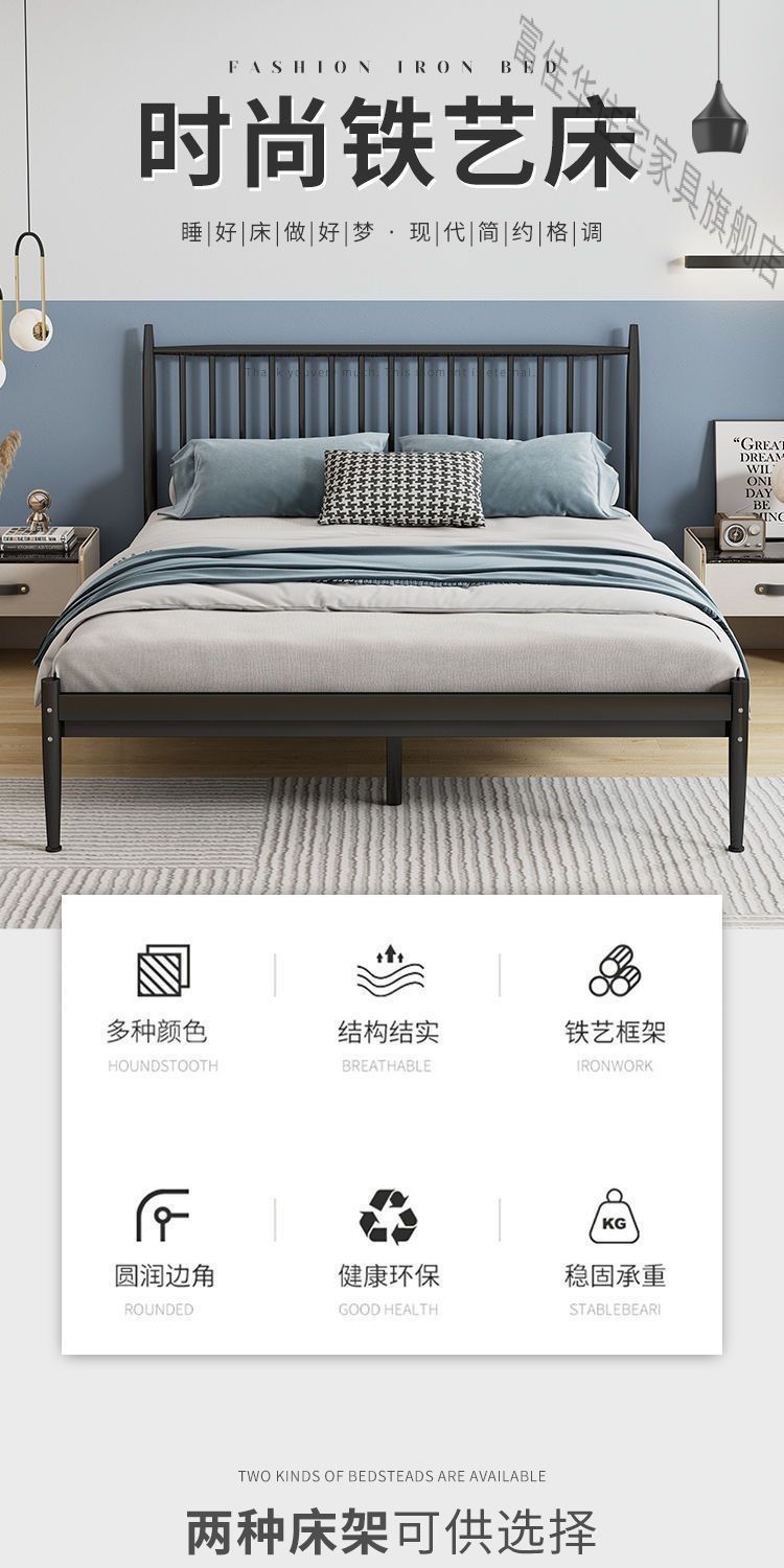 현대적인 간단한 철제 프레임 침대 강화 1.8m 더블 침대 북유럽 스타일 철제 침대 접이식 철제 침대 1m 싱글 침대