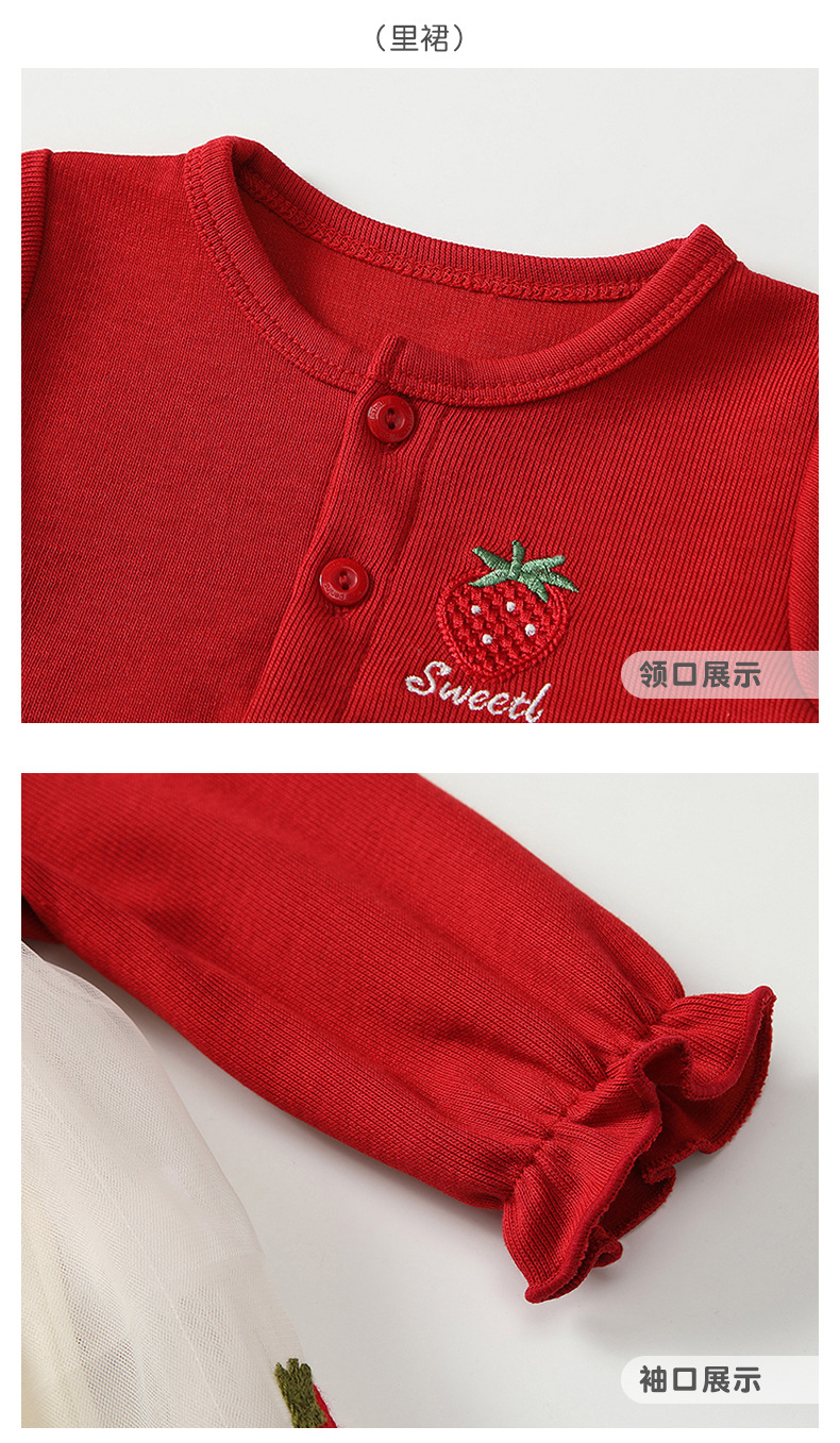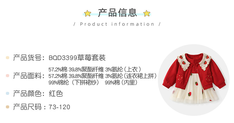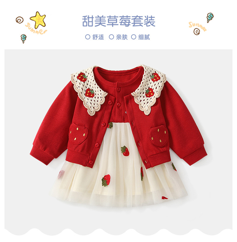 여아 정장 가을 새로운 한국 스타일 투피스 세트 아기 소녀 딸기 가디건과 딸기 거즈 스커트 아동복스토어 가기