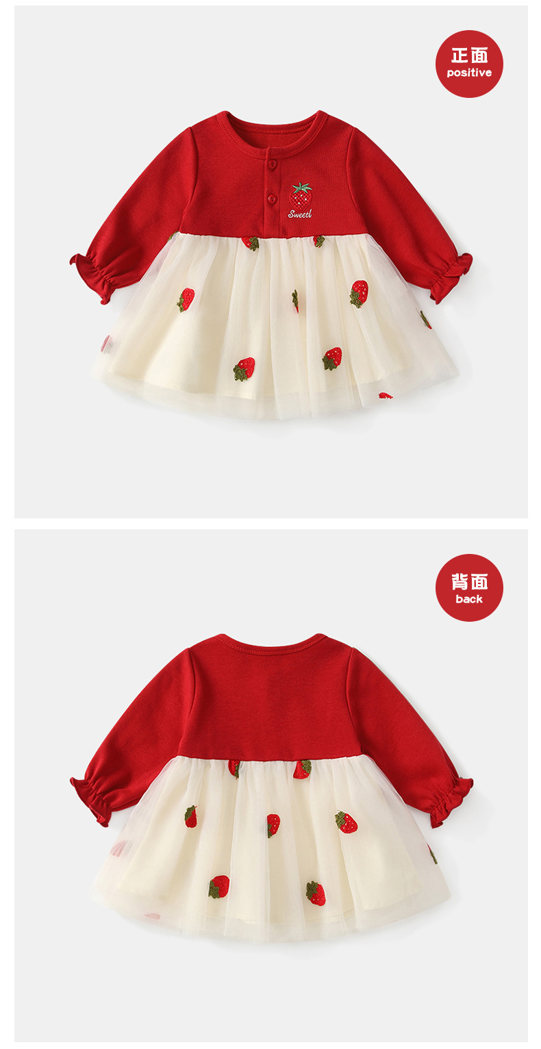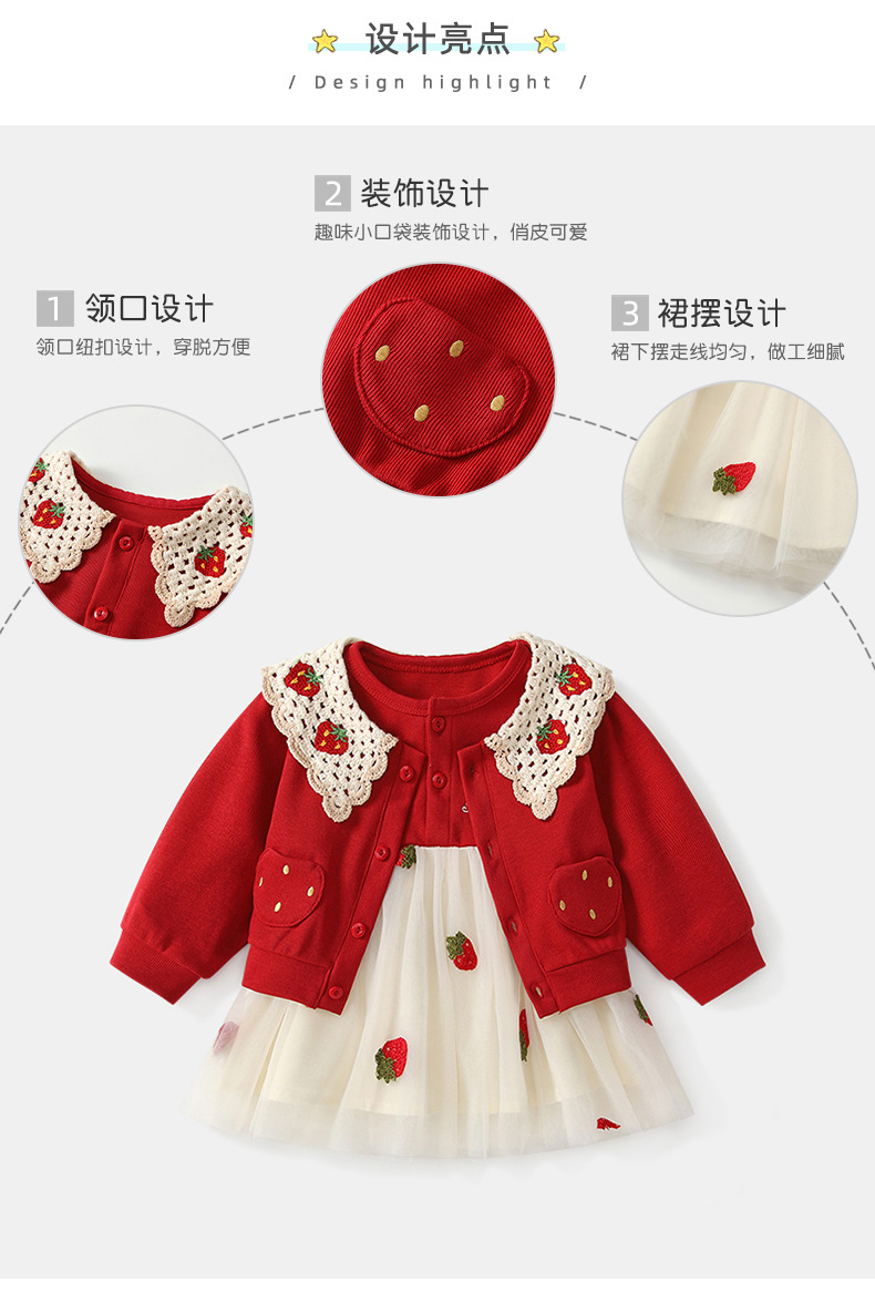 여아 정장 가을 새로운 한국 스타일 투피스 세트 아기 소녀 딸기 가디건과 딸기 거즈 스커트 아동복