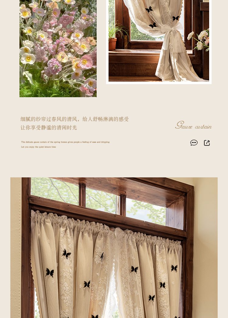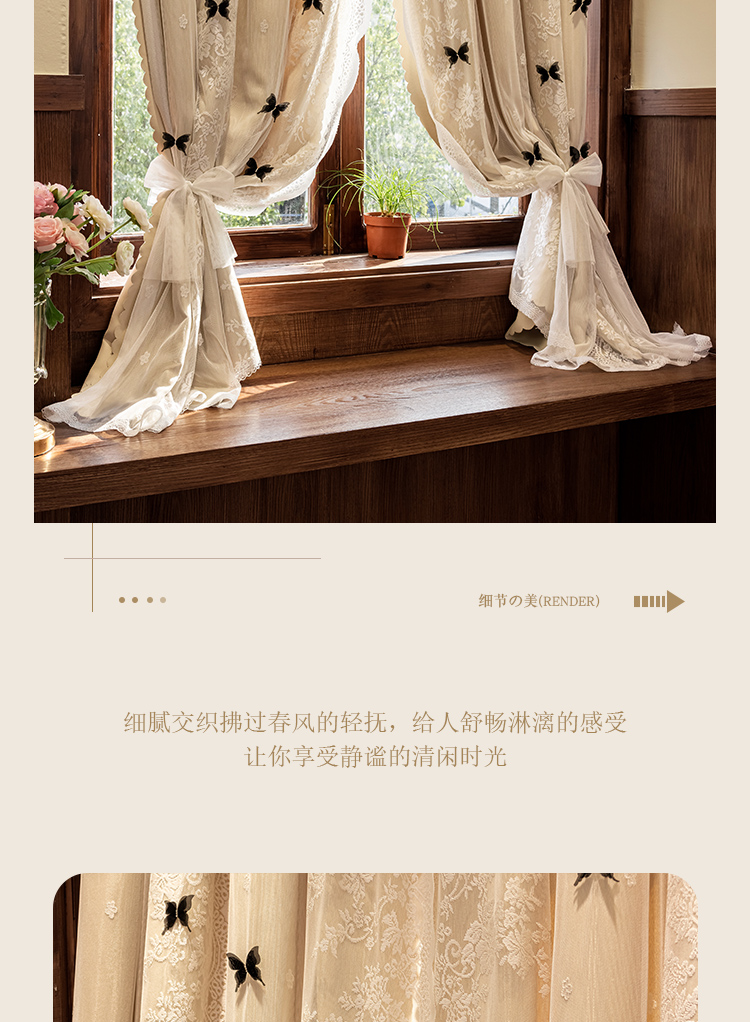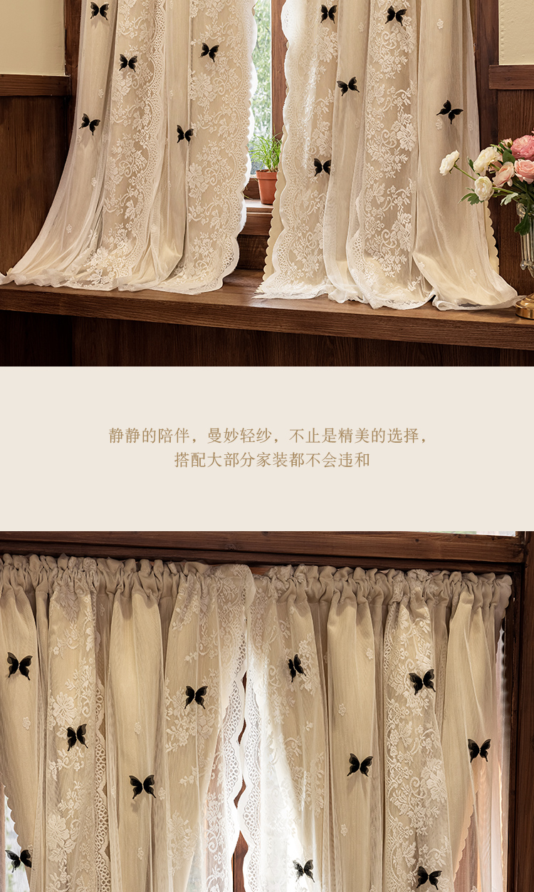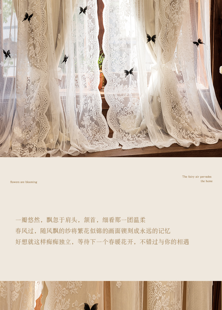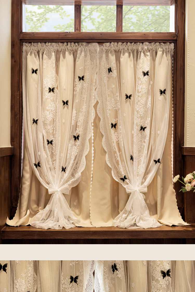 더블 레이어 빛 차단 침실 커튼 거즈 통합 공주 스타일 프랑스 우유 차 컬러 나비 인터넷 연예인 레이스 도어 커튼스토어 가기