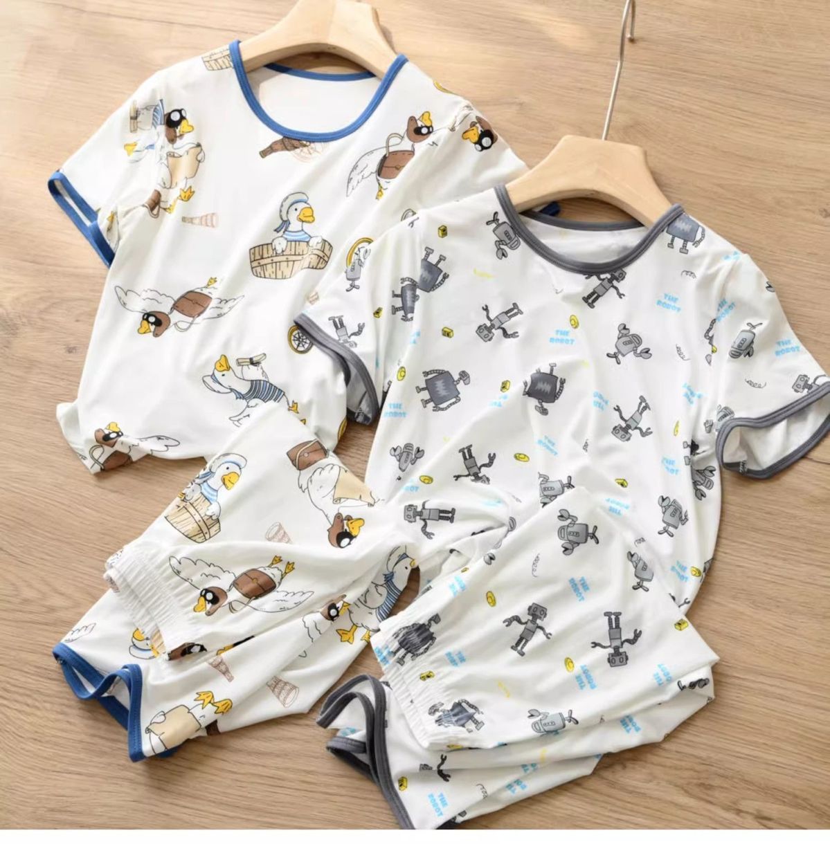 여름 소년 반팔 양복 얼음 실크 어린이 얇은 아기 새로운 통기성 가정 의류 중대형 어린이 에어컨 잠옷스토어 가기