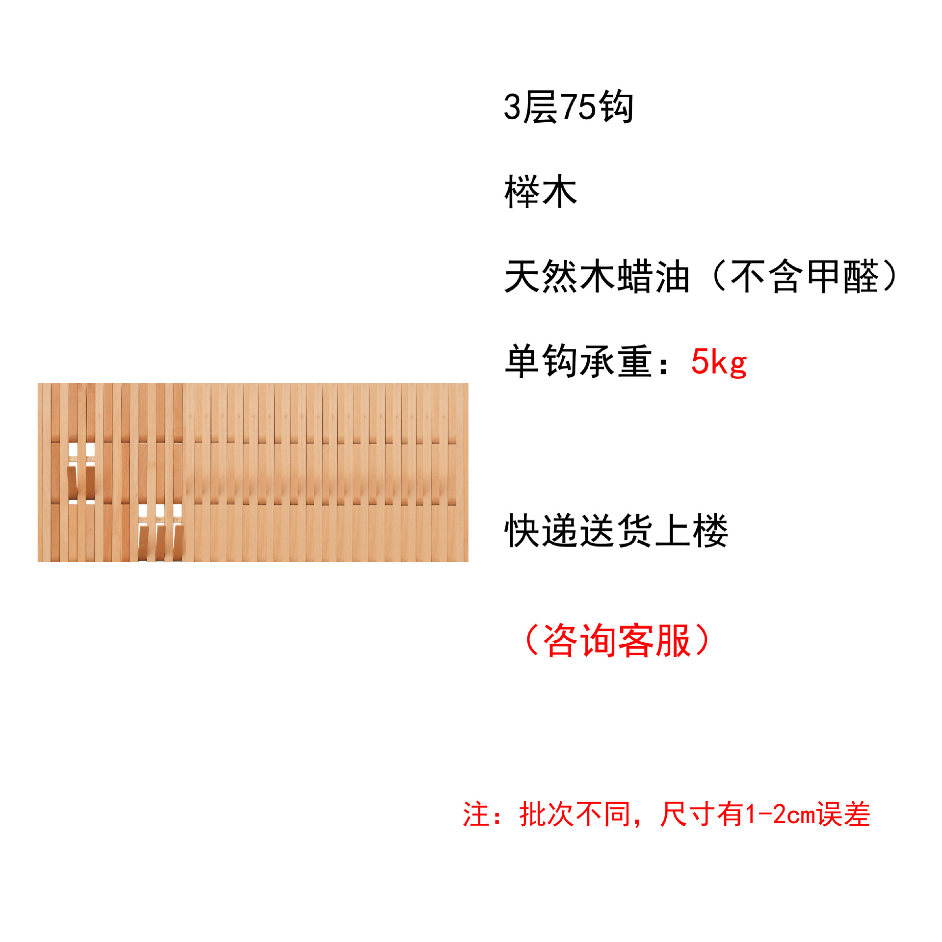• 8층, 8열, 64개 후크 - 너도밤나무 통나무 - 수직 버전