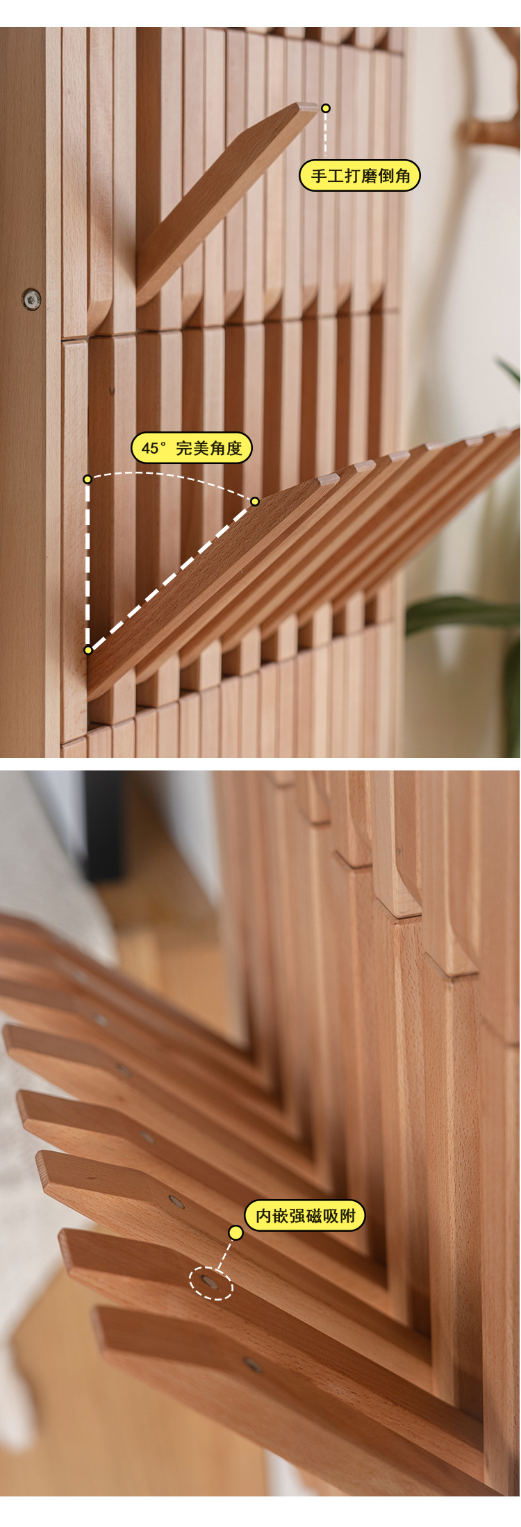• 7개 층, 8개 기둥, 56개 후크 - 너도밤나무 통나무 - 수직 버전