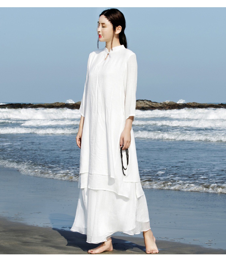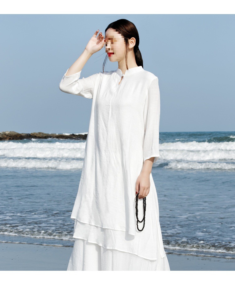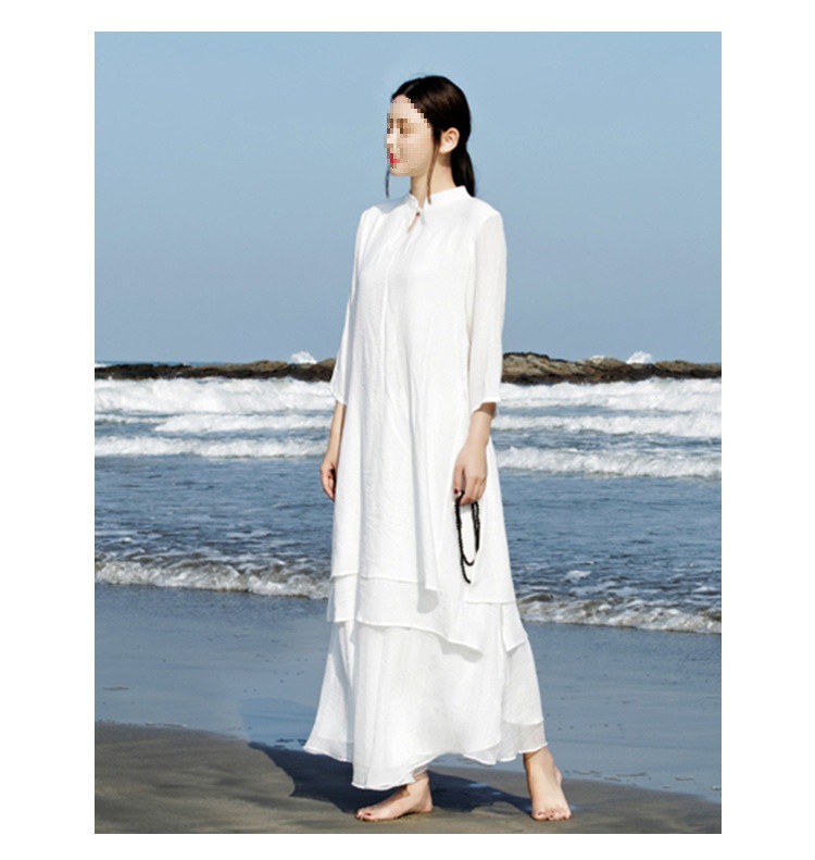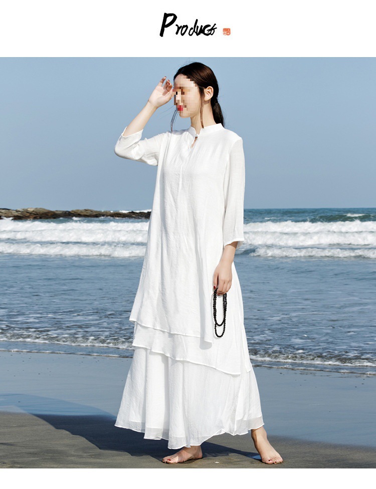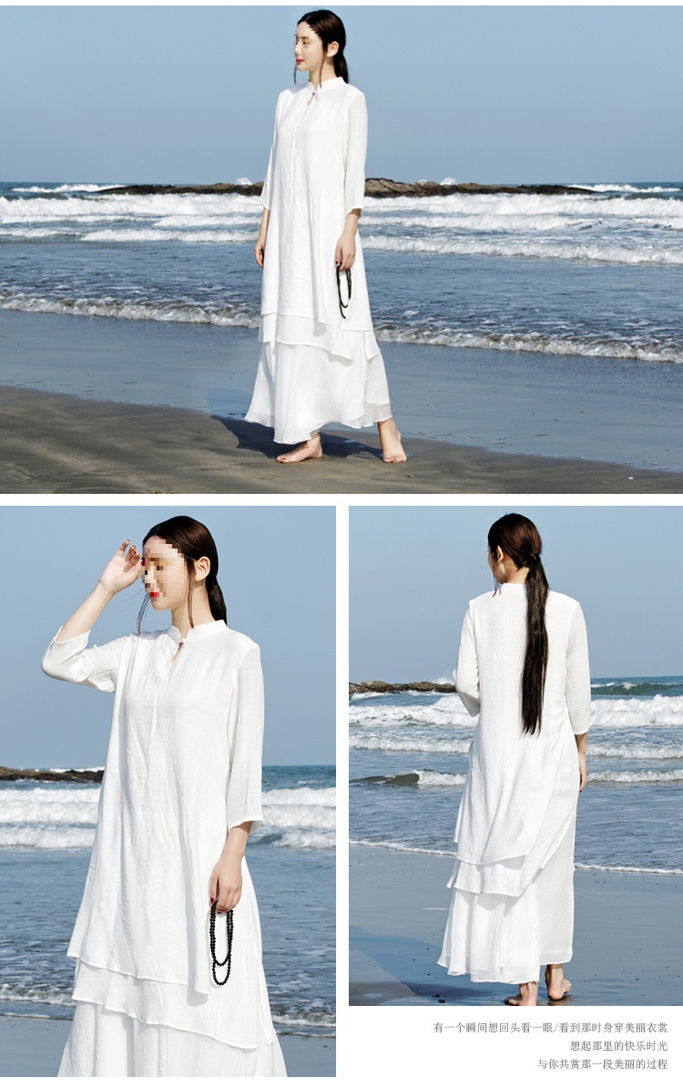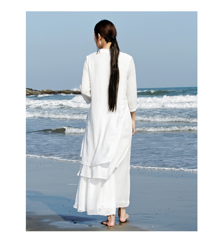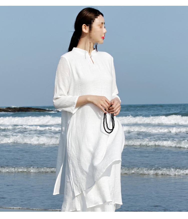 중국 여성 드레스 코튼과 린넨 더블 레이어 긴 선사복 차 의류 회의 작업복 건강 명상 일반 명상스토어 가기