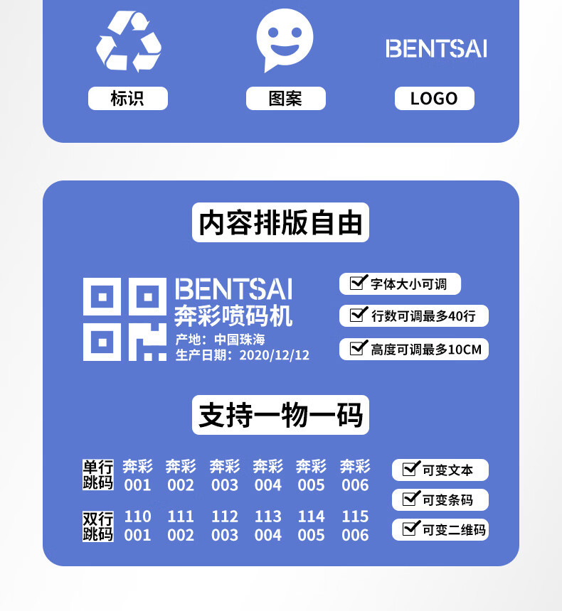 Bencai 휴대용 코딩 기계 초대형 문자 잉크젯 프린터 카톤 포장 디지털 텍스트 나무 QR 코드 바코드