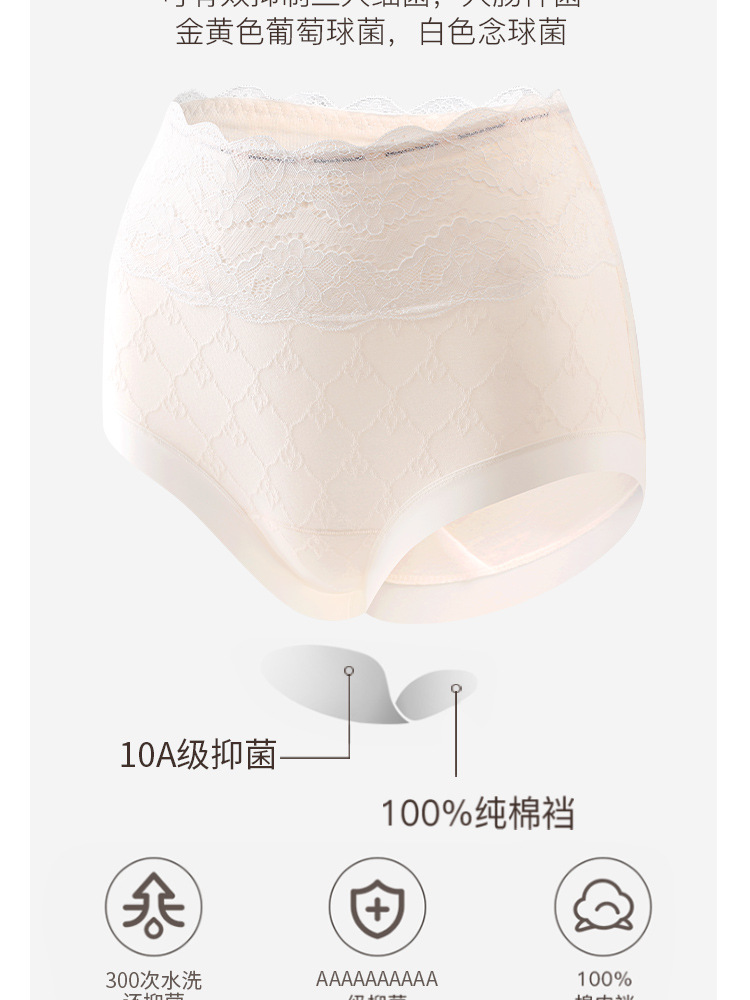 하이 웨이스트 심리스 팬티, 여성스러운 여름 얇고 통기성이 뛰어나며 편안한 실크 가랑이 배 조절 피부 친화적인 레이스 팬티