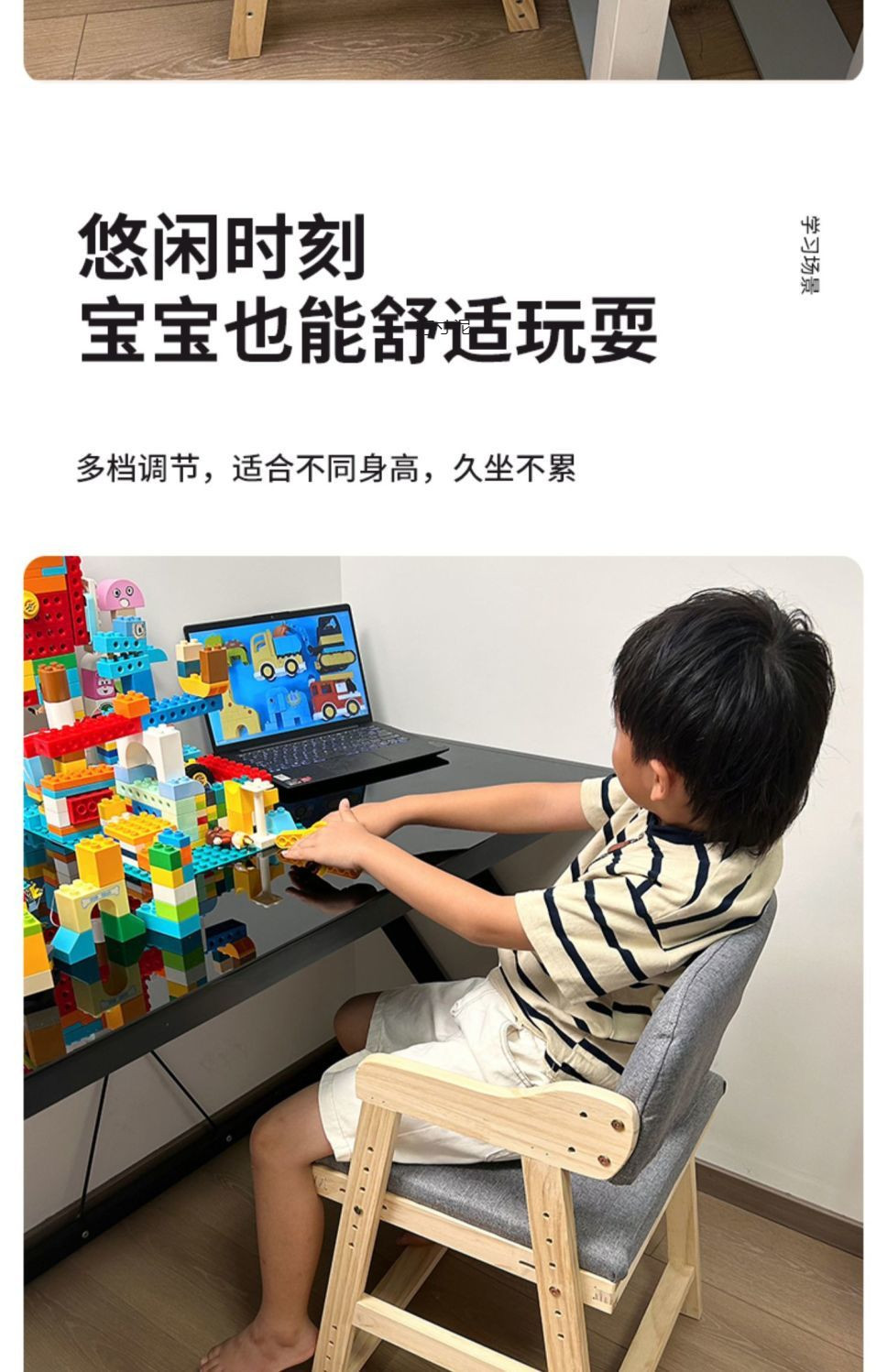 성장 조절 가능한 앉은 자세 교정 기능이 있는 원목 어린이 식탁 의자, 가정용 리프팅 등받이, 아기가 먹고 쓰는 작은 의자스토어 가기