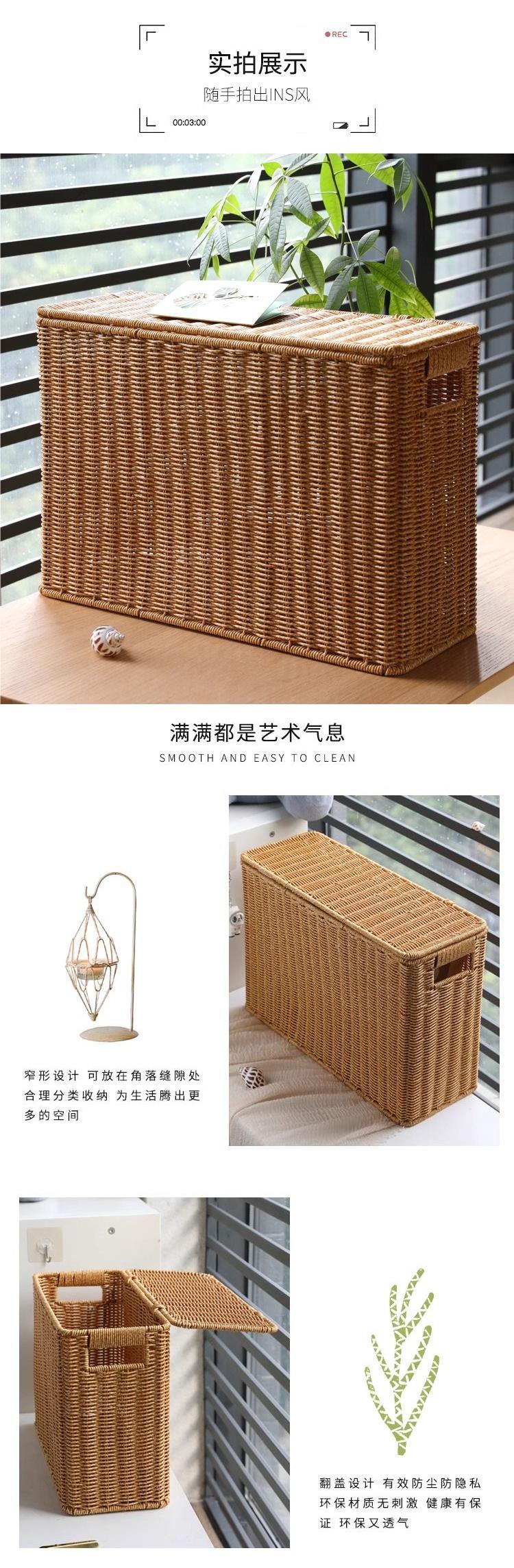 뚜껑이 있는 바구니, 가정용 수납함, 소파 수납함, 높고 좁은 모서리 모조 등나무 수납바구니, 틈새 잡지 코너스토어 가기