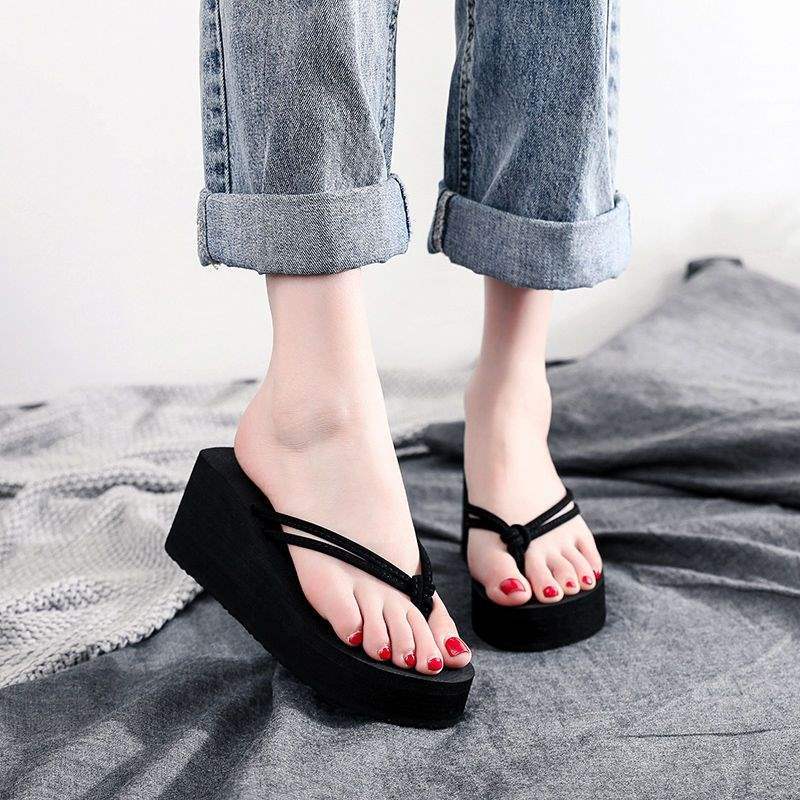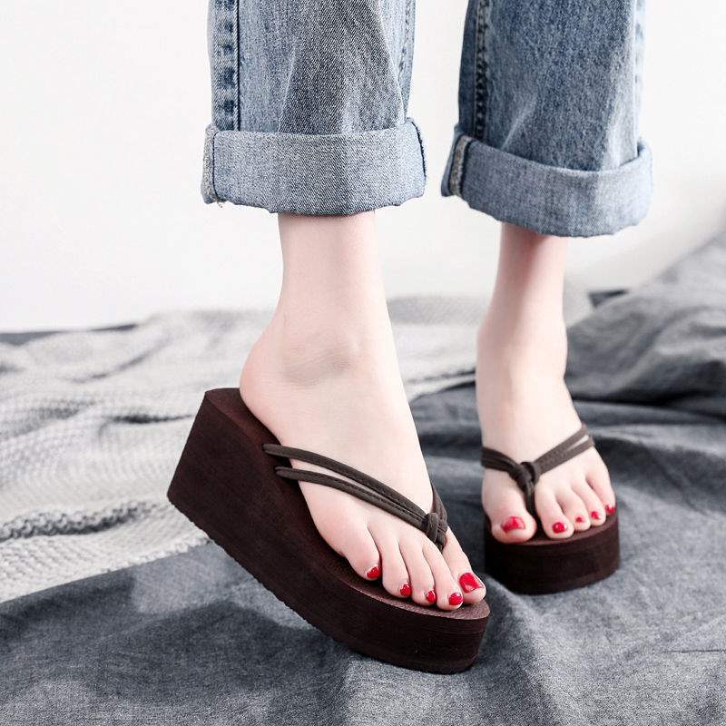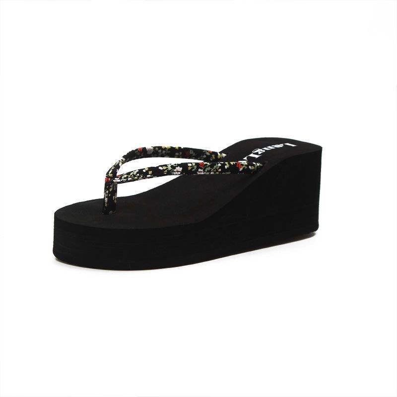 여성용 꽃무늬 슬리퍼, 두꺼운 밑창 하이힐, 여름 해변 해변 아우터웨어, 달콤한 샌들, 미끄럼 방지 웨지 힐, 새로운 스타일스토어 가기