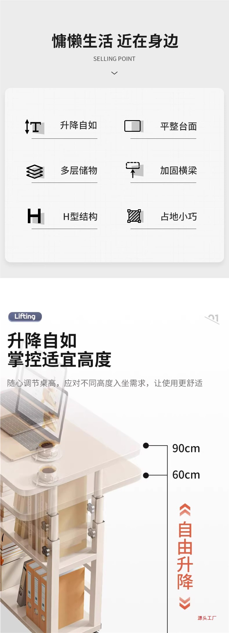 • [안정성을 높인 H형 모델] 웜화이트 80*40CM ▲