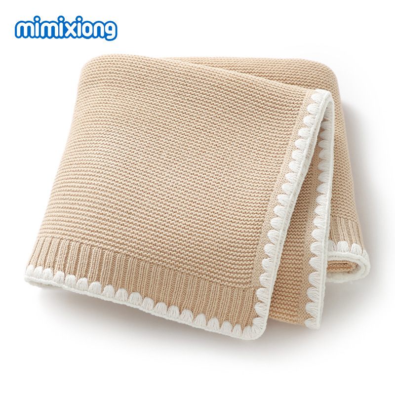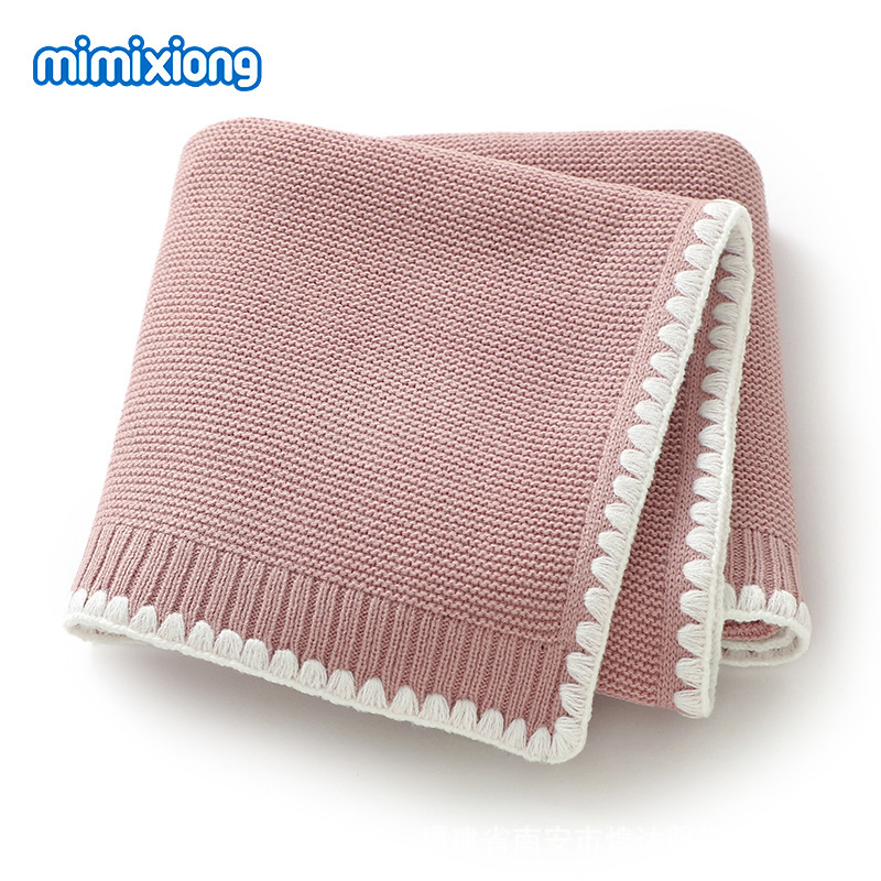 Ins 뜨거운 판매 봄과 가을 새로운 스타일 니트 솔리드 컬러 유아 담요 아기 유모차 커버 신생아 에어컨 커버 담요