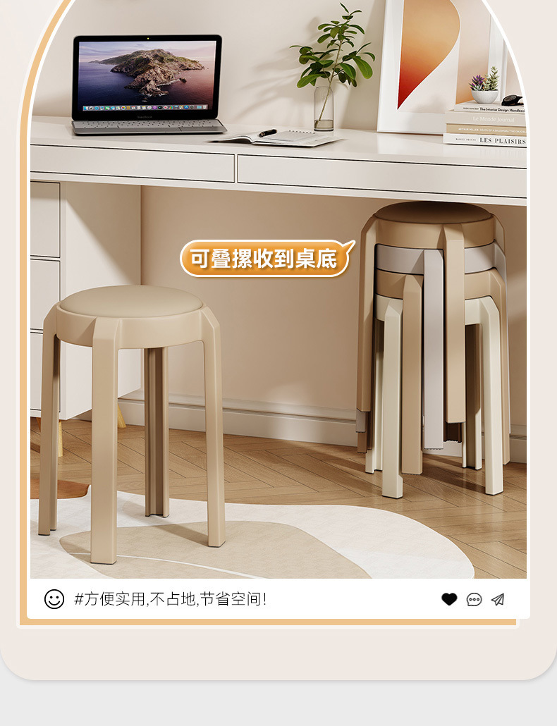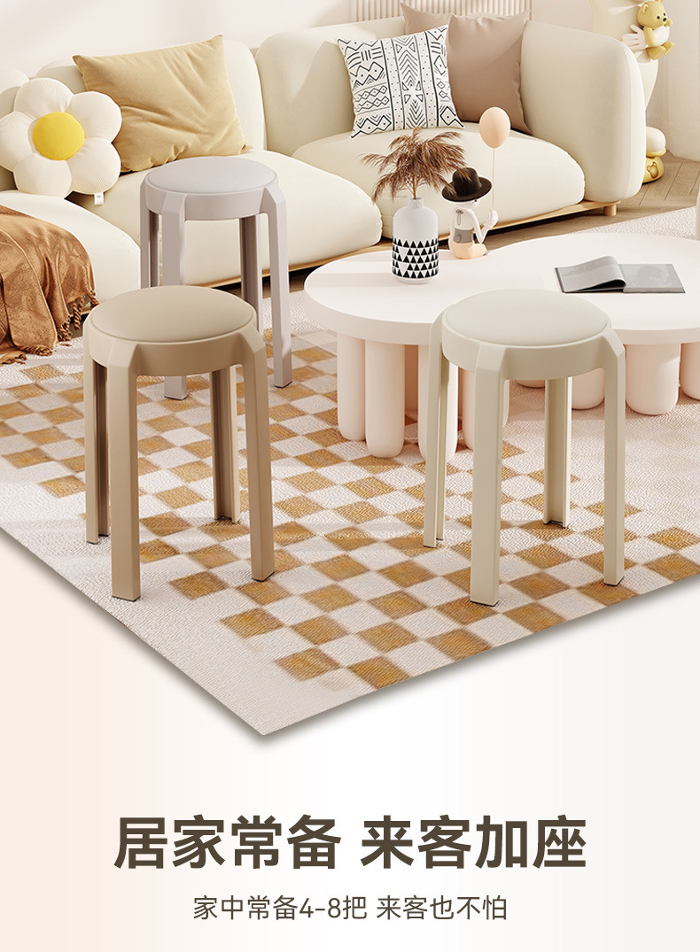 집에서 쌓을 수 있는 플라스틱 의자, 두꺼운 현대적인 간단한 식탁, 둥근 의자, 거실에 강한 부드러운 플라스틱 의자