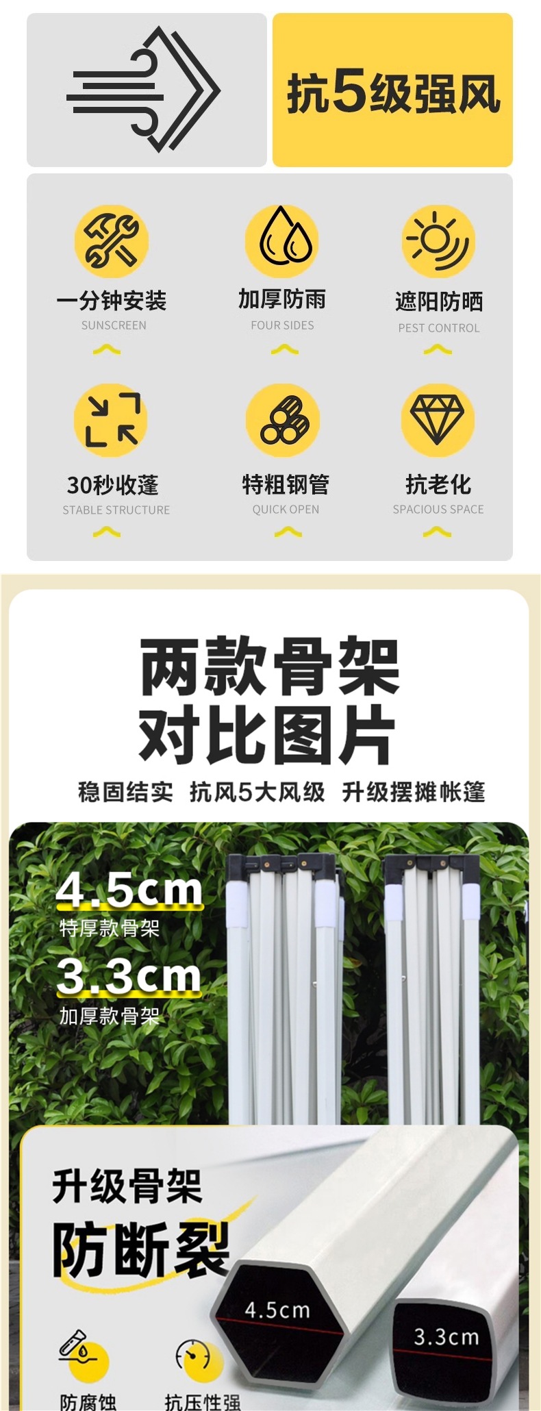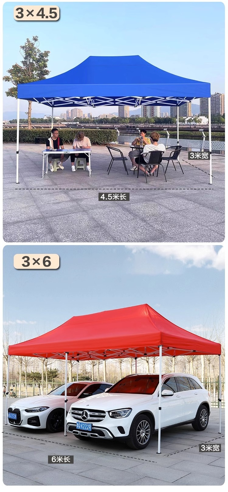 야외용 4각 접이식 천막, 4각 차양, 방수 이벤트 텐트, 접이식 두꺼운 대형 우산