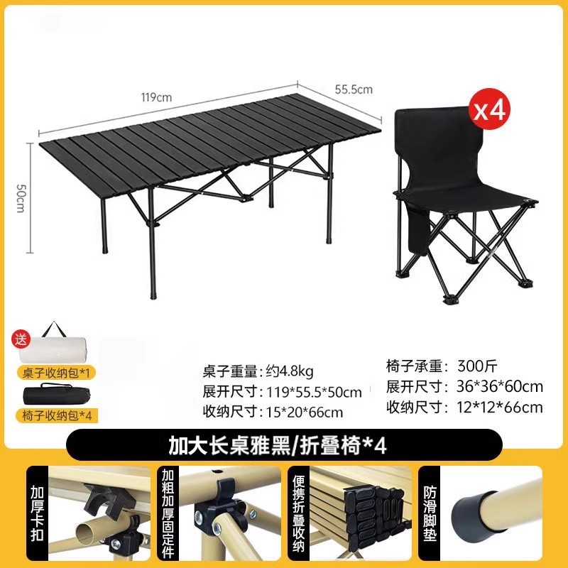 • 확장된 매트 블랙 접이식 긴 테이블 + 대형 접이식 의자*4
