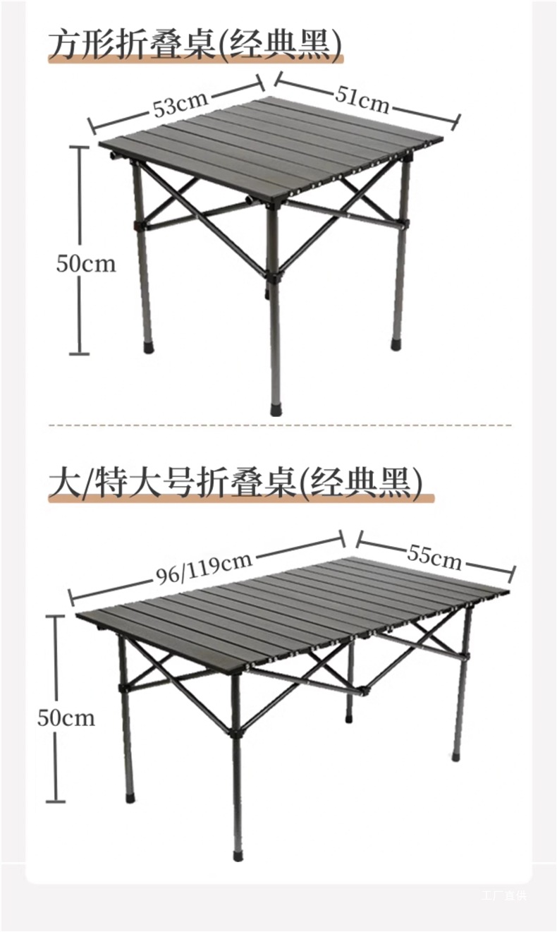 • 매트 블랙 접이식 사각 테이블 [넓은 테이블 상판/안정적인 내하중/경량 및 휴대 가능]