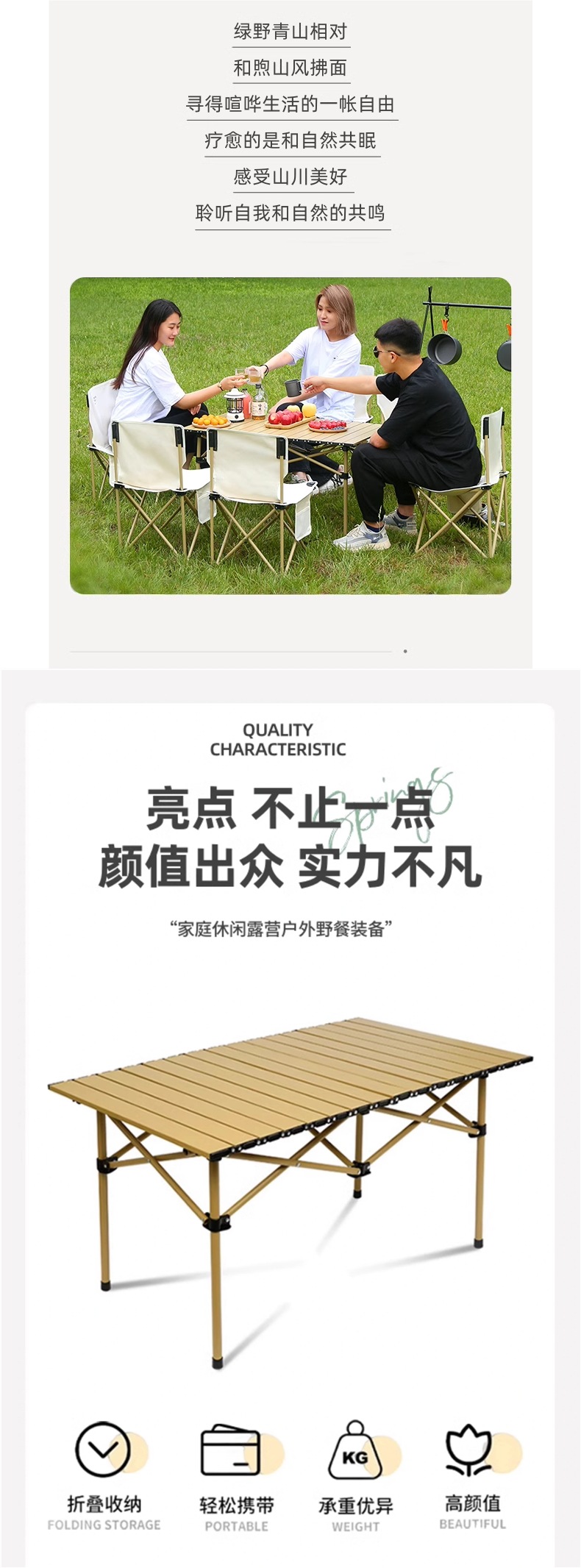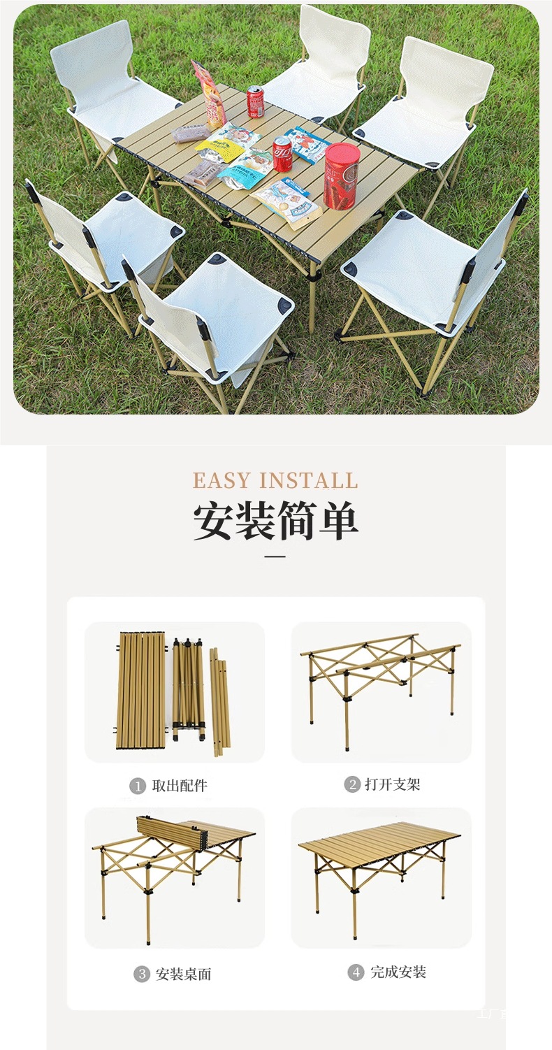 피크닉 테이블과 의자 캠핑 야외 접이식 테이블 계란말이 테이블 장비 세트 캠핑 스톨 휴대용 테이블 1개와 의자 4개스토어 가기
