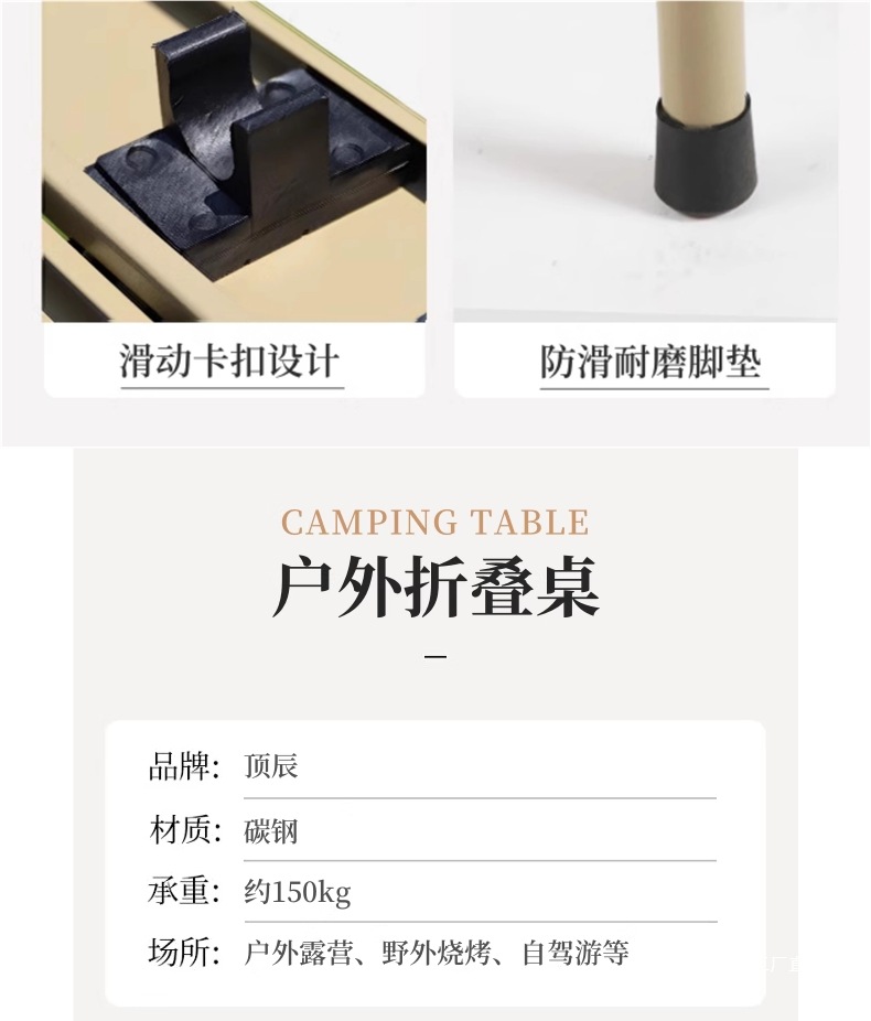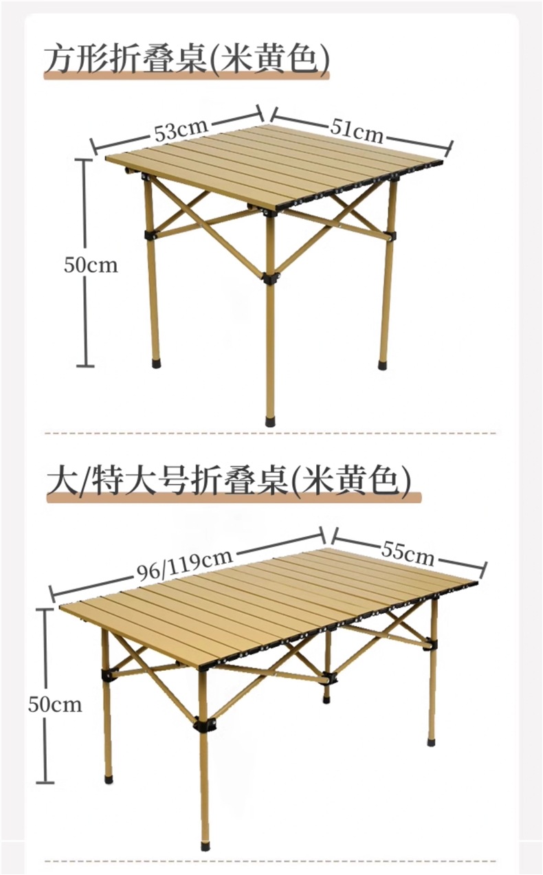 • 베이지 접이식 사각 테이블 [넓은 테이블 상판/안정적인 내하중/경량 및 휴대성]