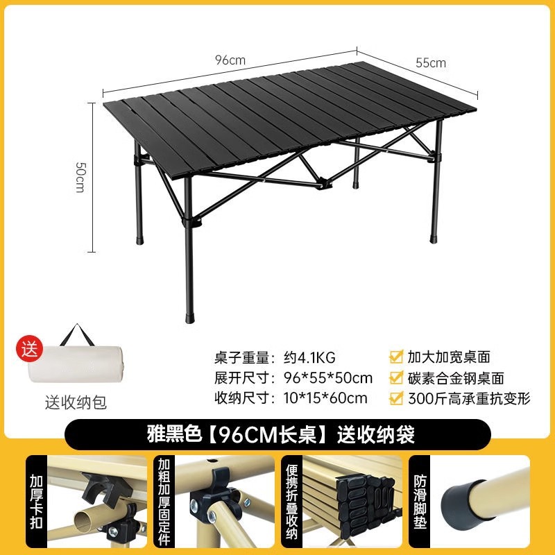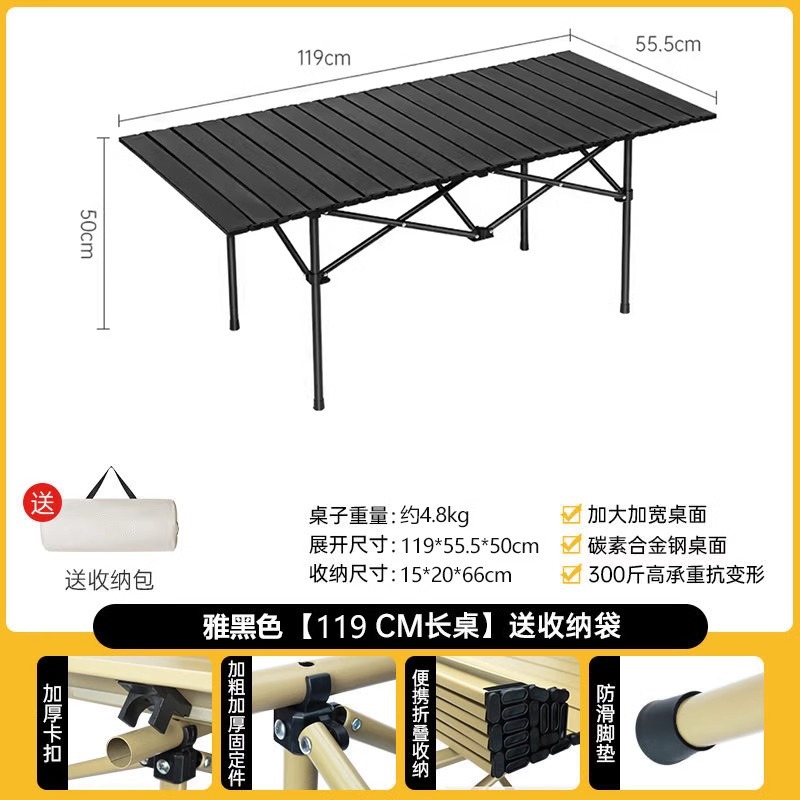 • 확장된 무광 블랙 접이식 긴 테이블 [넓은 데스크탑/안정적인 내하중/경량 및 휴대 가능]
