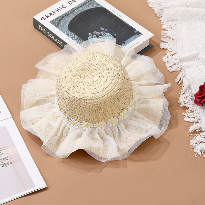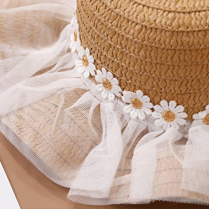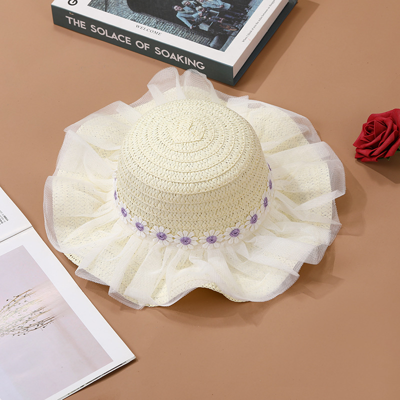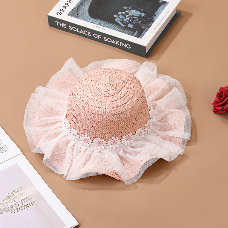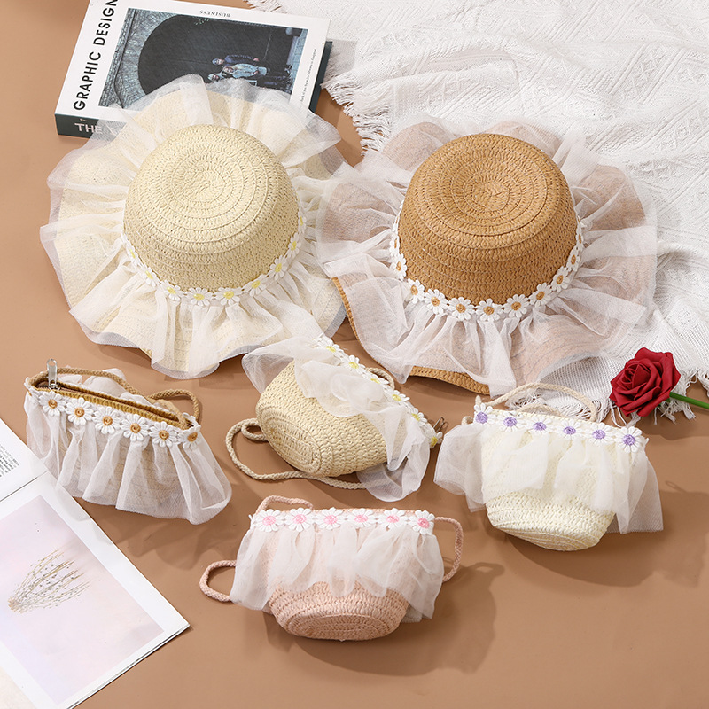 어린이 레이스 꽃 태양 보호 태양 모자 아기 여름 태양 모자 소녀 큰 챙 밀짚 모자 어린이 가방 모자스토어 가기