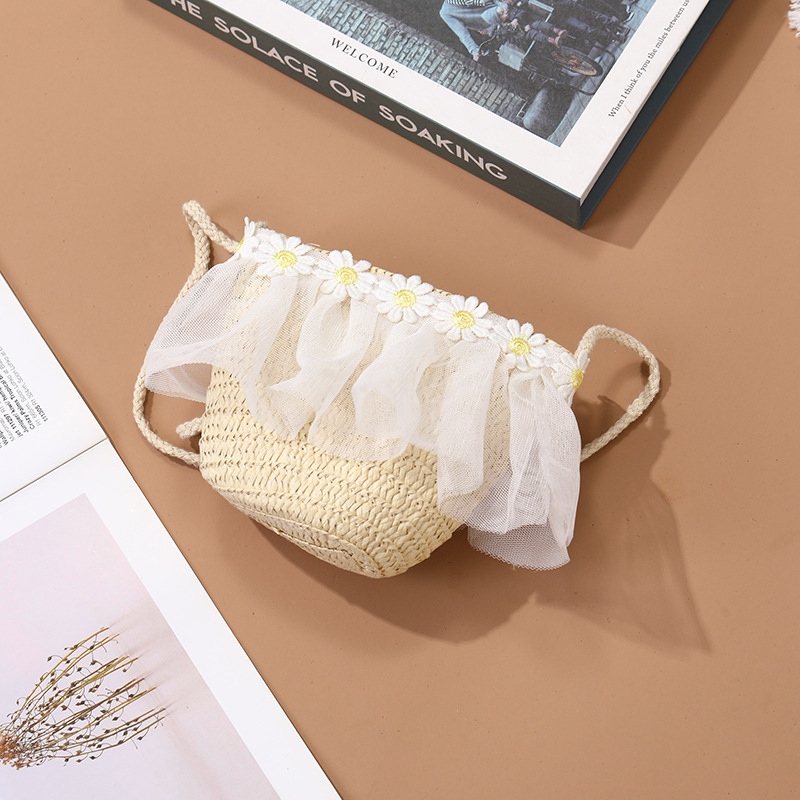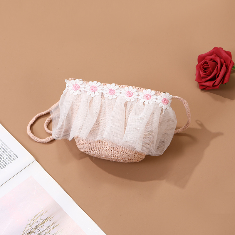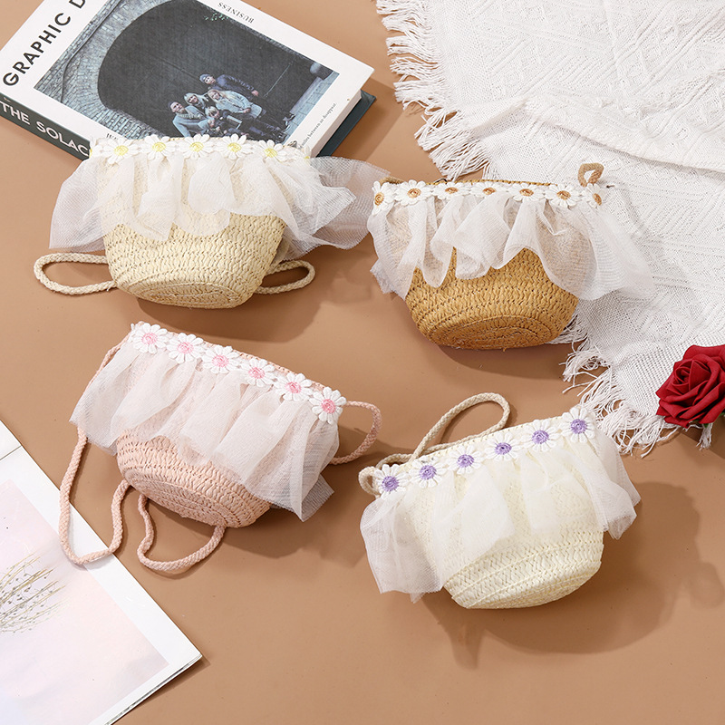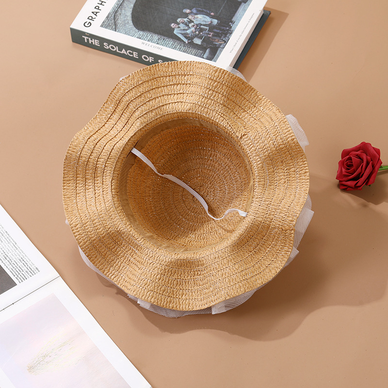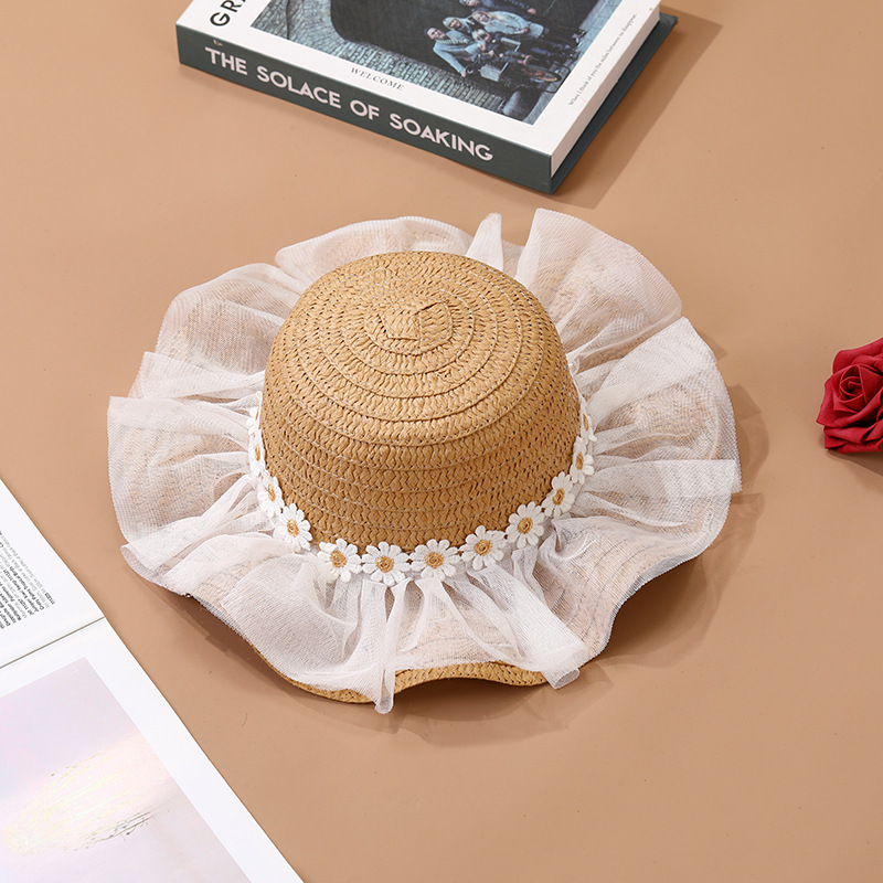 어린이 레이스 꽃 태양 보호 태양 모자 아기 여름 태양 모자 소녀 큰 챙 밀짚 모자 어린이 가방 모자스토어 가기