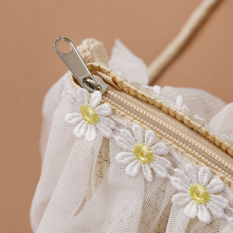 • 크림 화이트 챙이 넓은 가방 - 메쉬 데이지