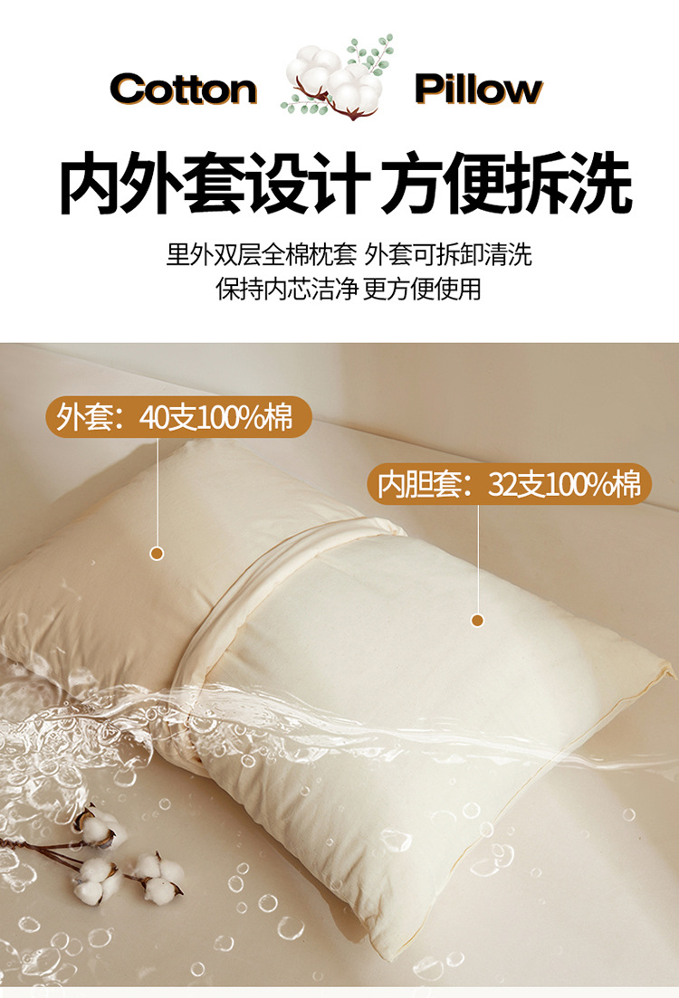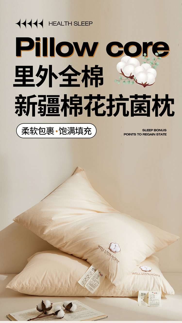순면 베개 코어, 신장면 베개, 가정용 성인 경추 보호 수면 베개 코어, 싱글 학생 기숙사 베개 코어스토어 가기