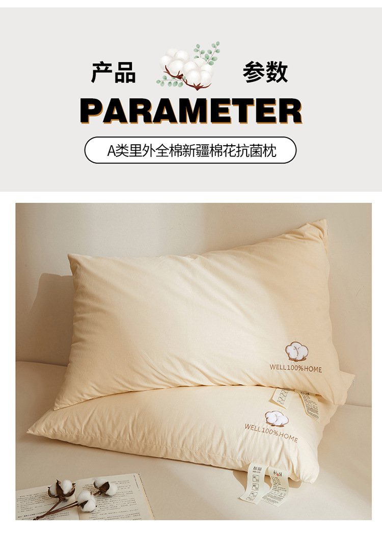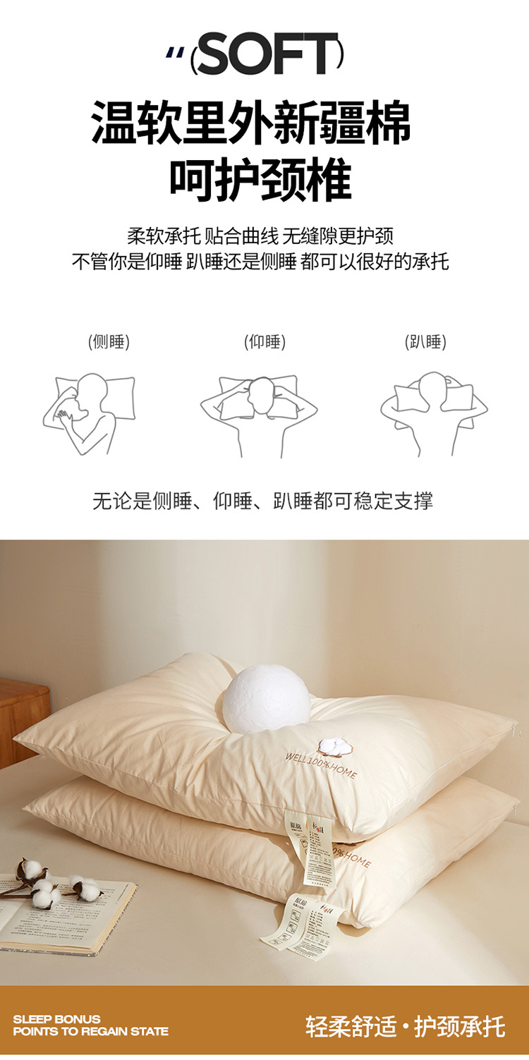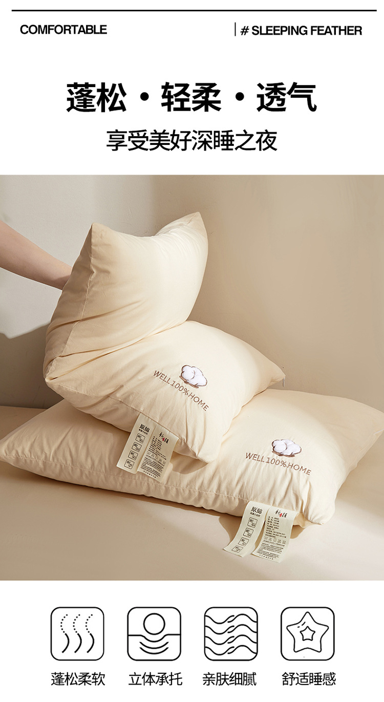 순면 베개 코어, 신장면 베개, 가정용 성인 경추 보호 수면 베개 코어, 싱글 학생 기숙사 베개 코어