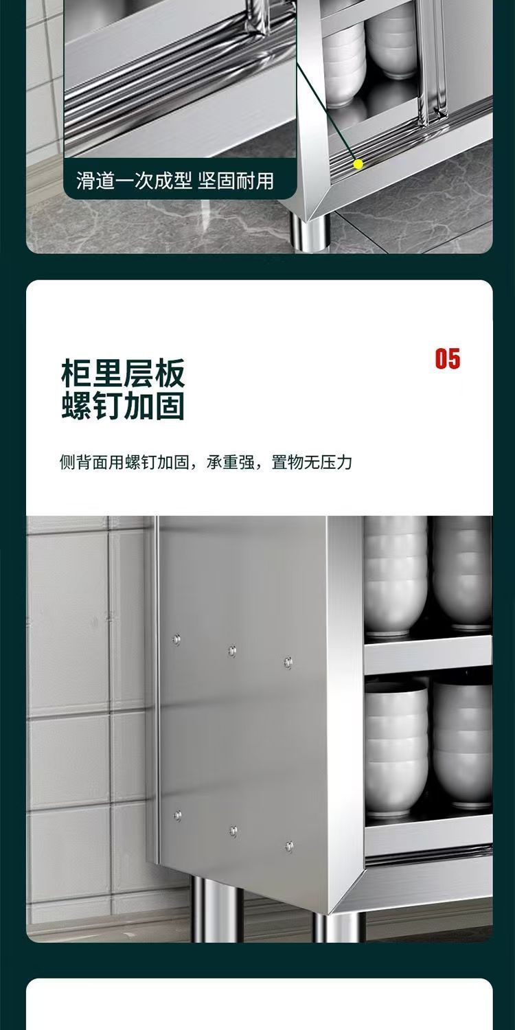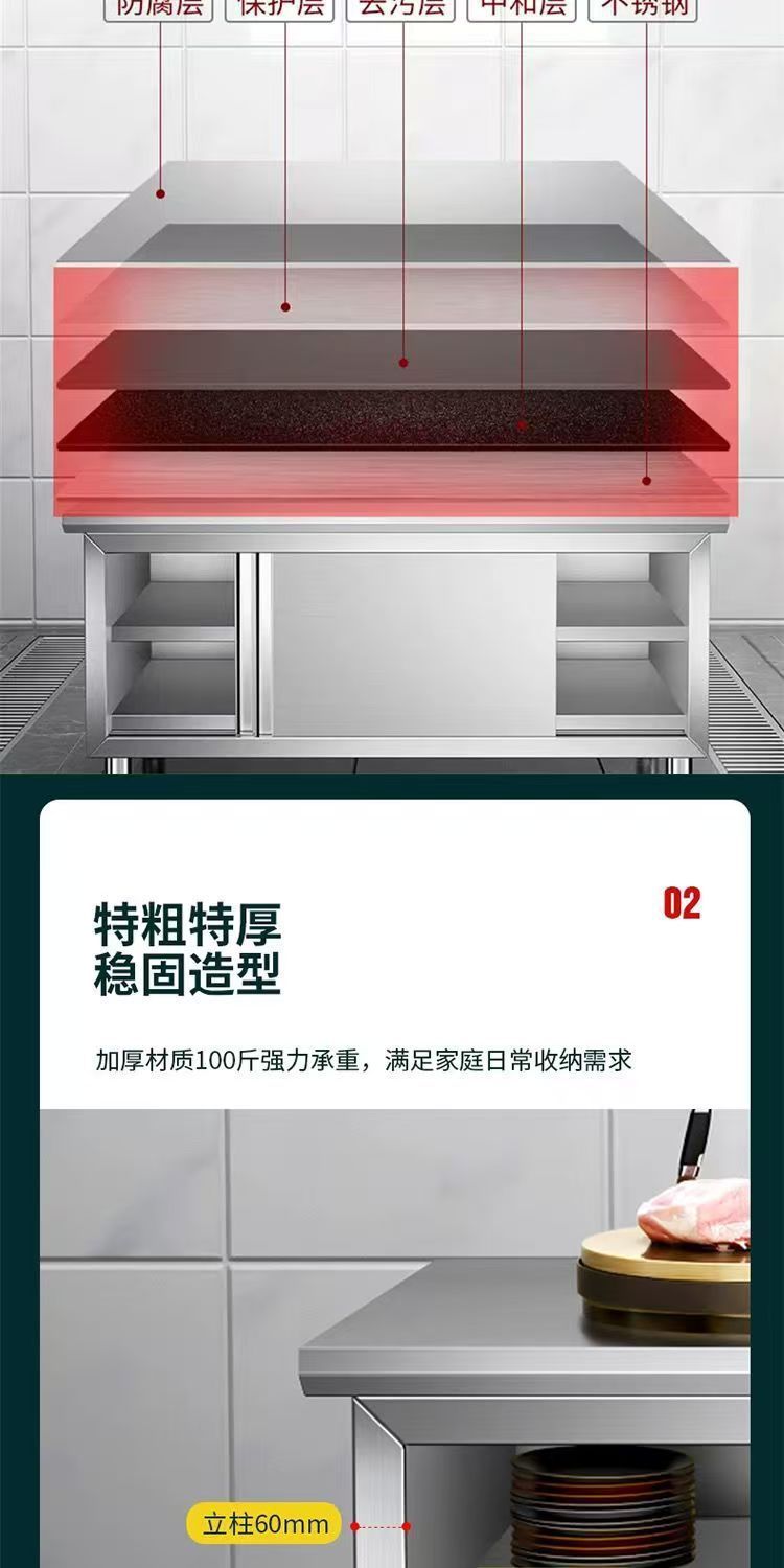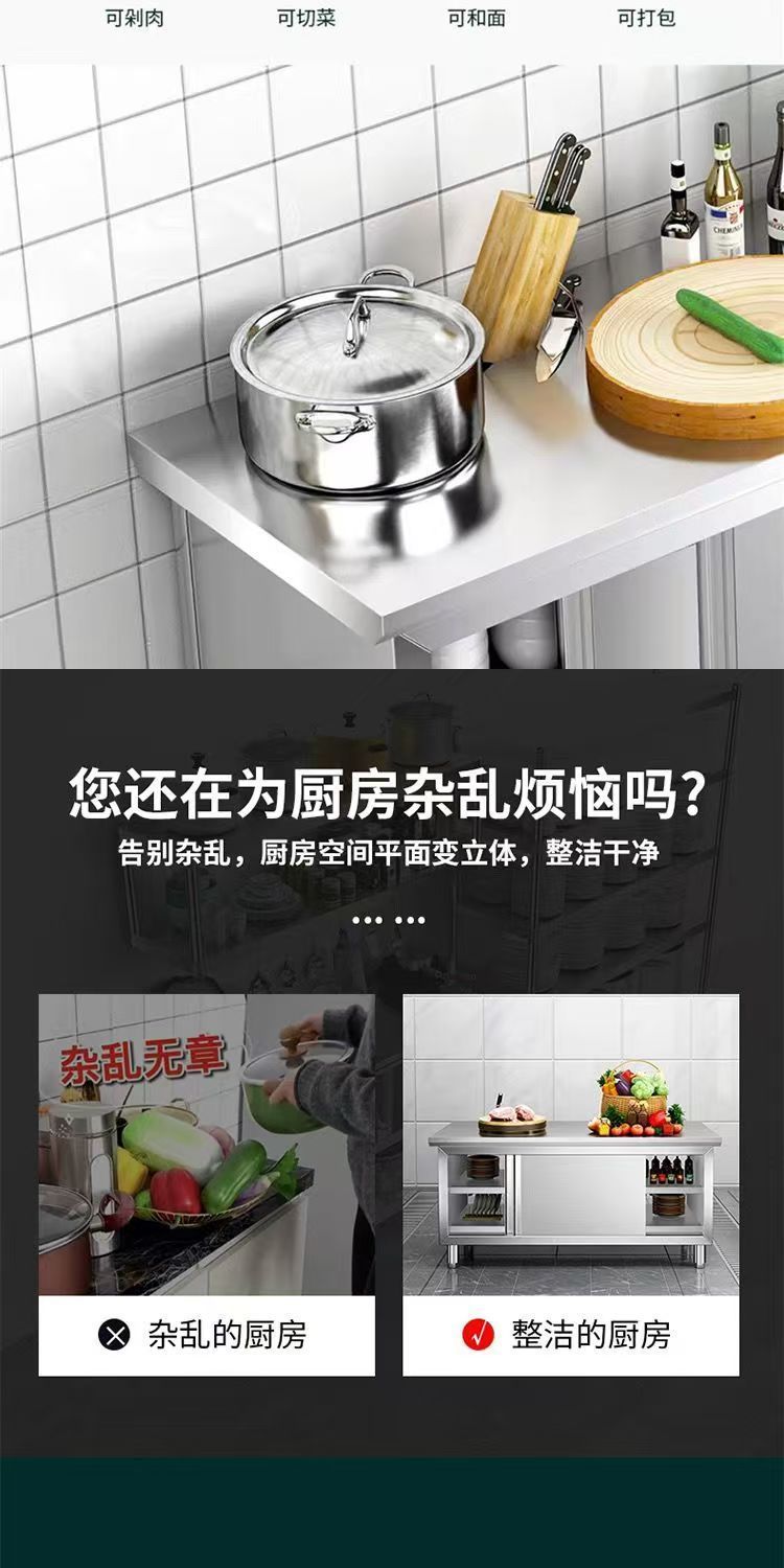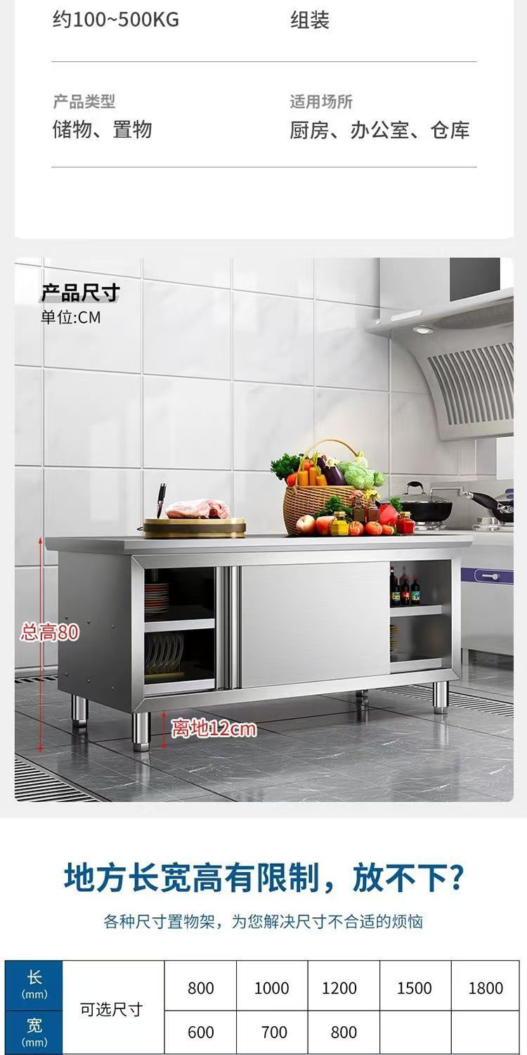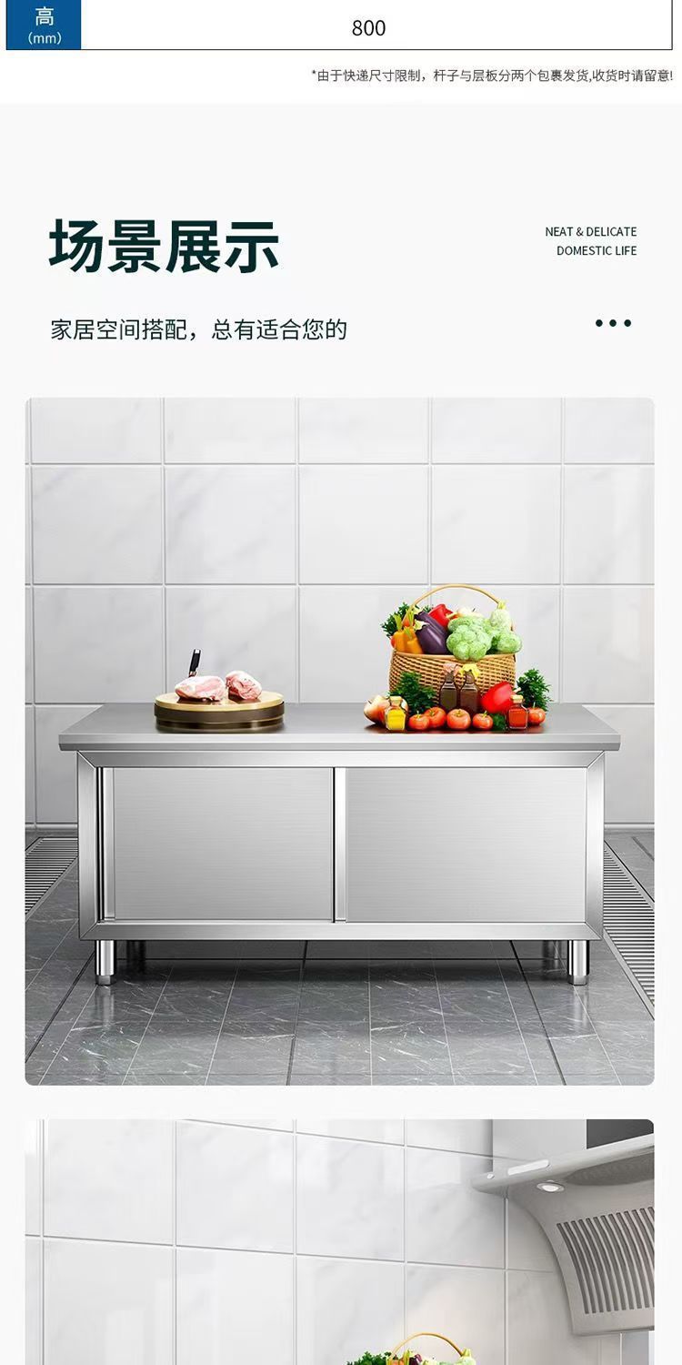 두꺼운 스테인레스 스틸 작업대 주방 캐비닛 상업용 레스토랑 테이블 가정용 작업대 슬라이딩 도어스토어 가기