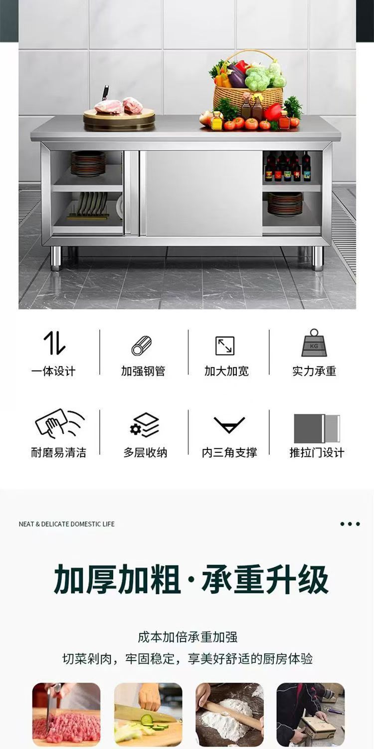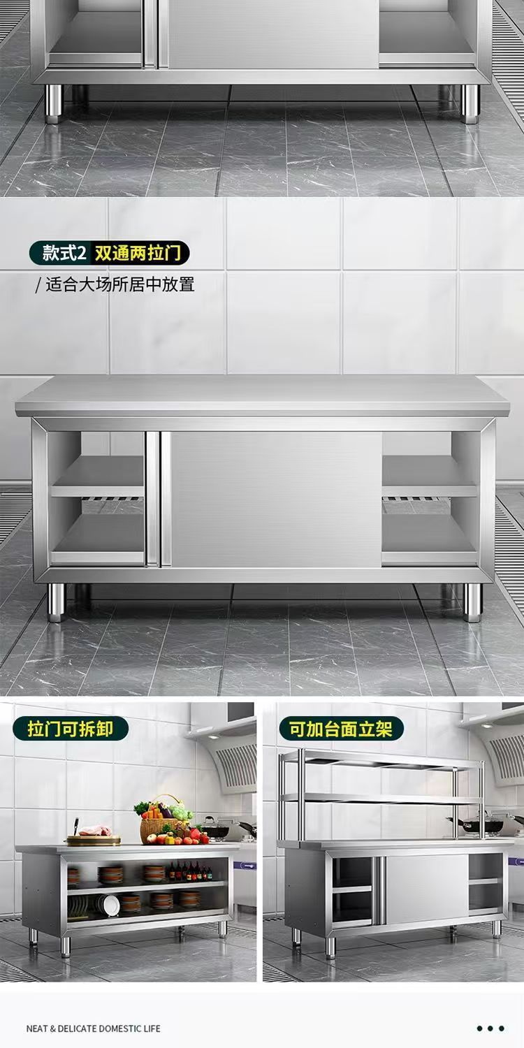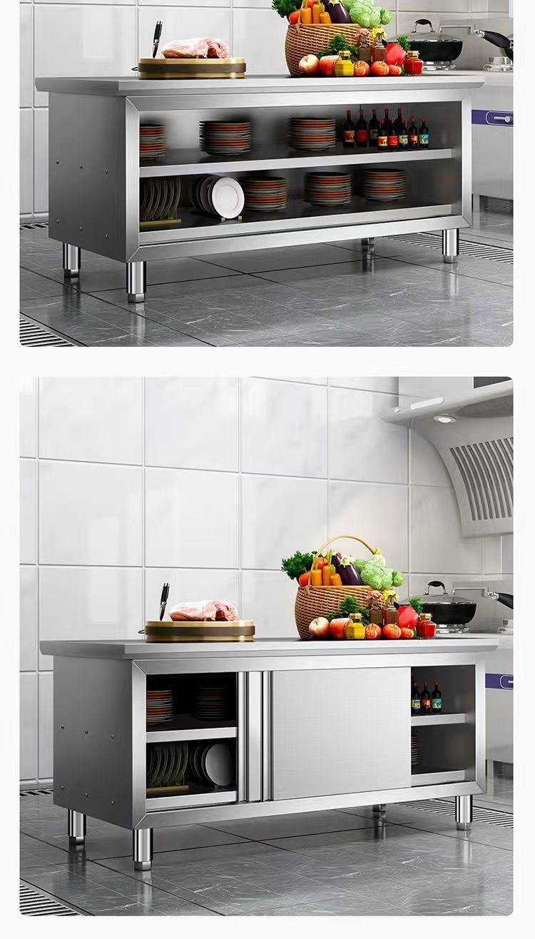 두꺼운 스테인레스 스틸 작업대 주방 캐비닛 상업용 레스토랑 테이블 가정용 작업대 슬라이딩 도어