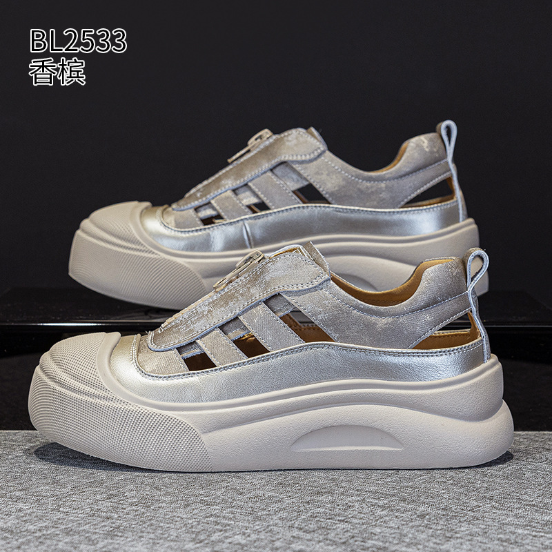 샌들 여성 Baotou 2025 시즌 새로운 슈퍼 핫 중공 통기성 캐주얼 복고풍 중간 지퍼 두꺼운 밑창 로마 운동화