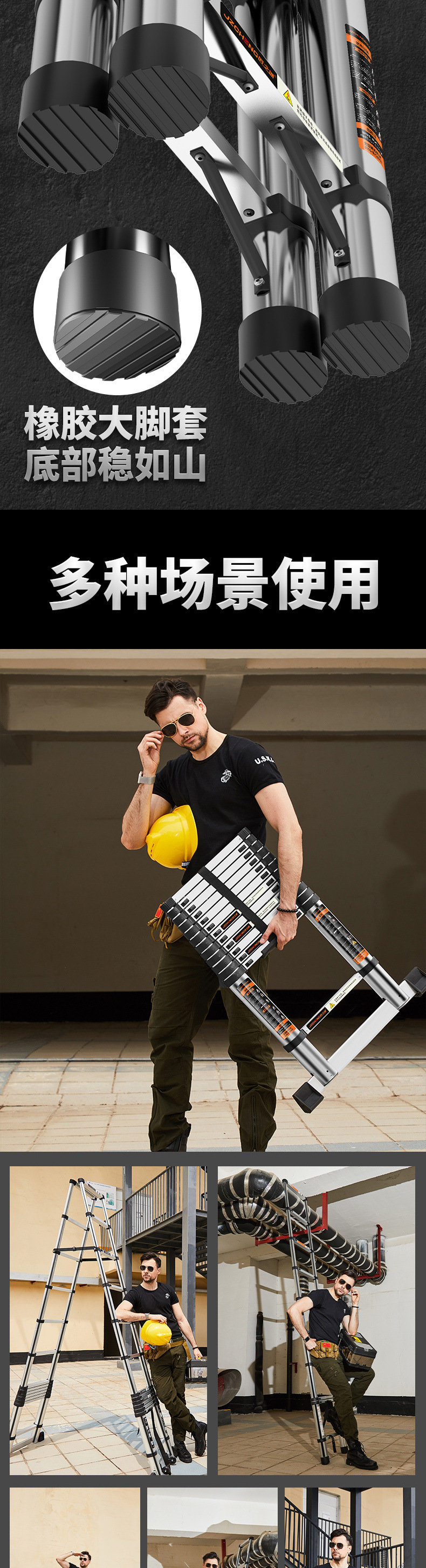 • [대형*조인트] 다기능 3.7m - 스테인레스 스틸*두꺼워진*신축사다리