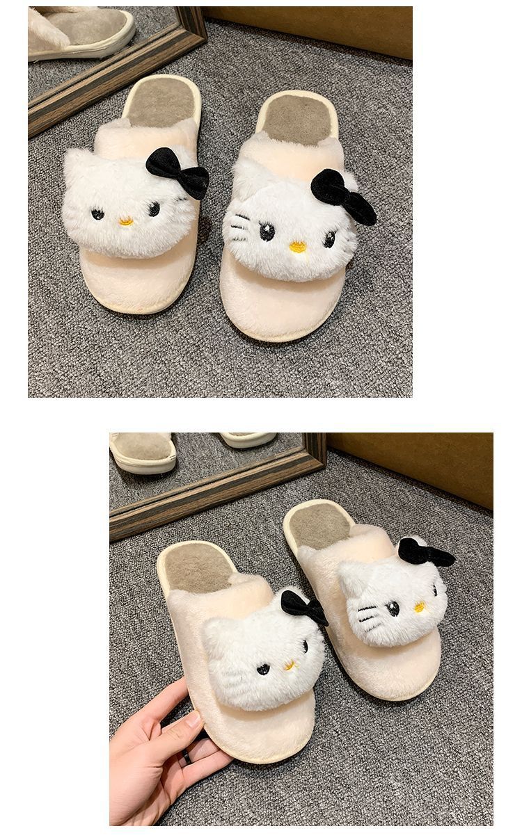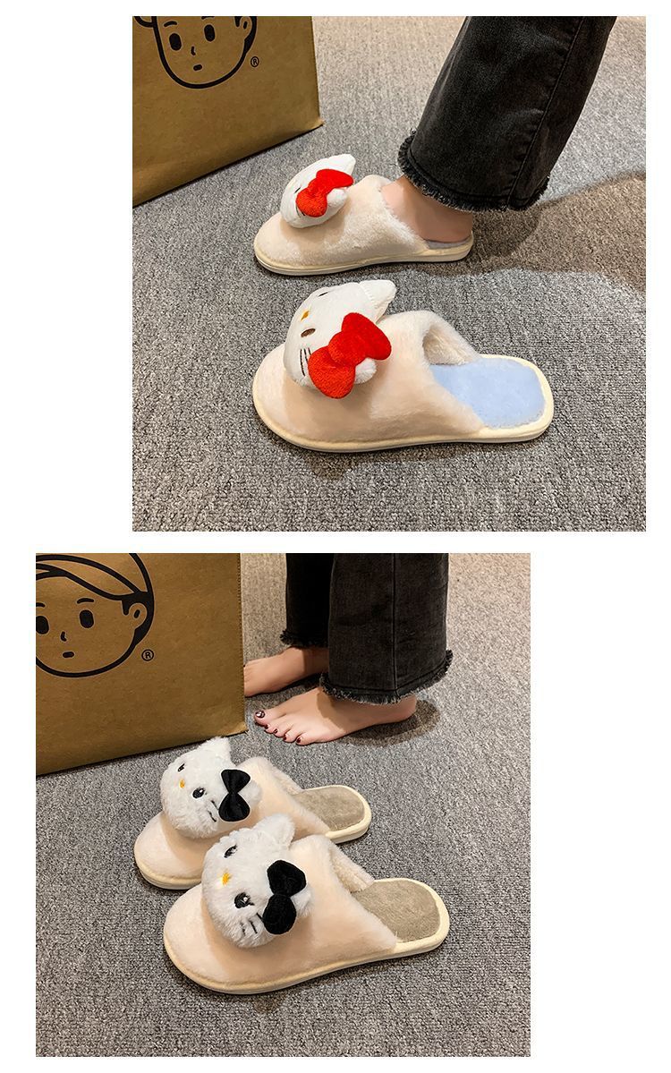 귀여운 고양이 부드러운 밑창 플러스 벨벳 면화 슬리퍼 2025 가을, 겨울 따뜻한 실내 집 편안한 플러시 면화 슬리퍼스토어 가기