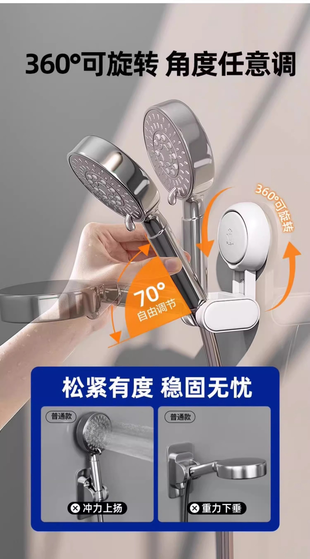 • 업그레이드된 유니버셜 샤워랙(360 ° 스핀/70 ° 자유롭게 조정)