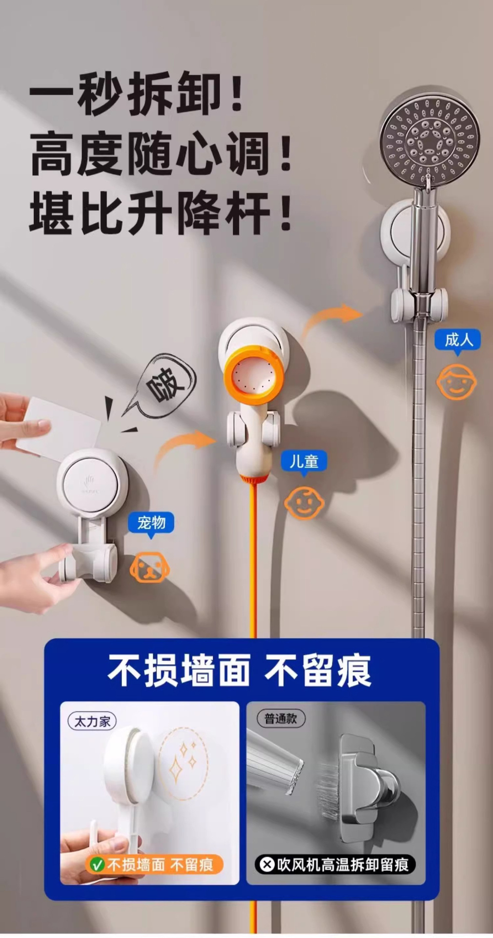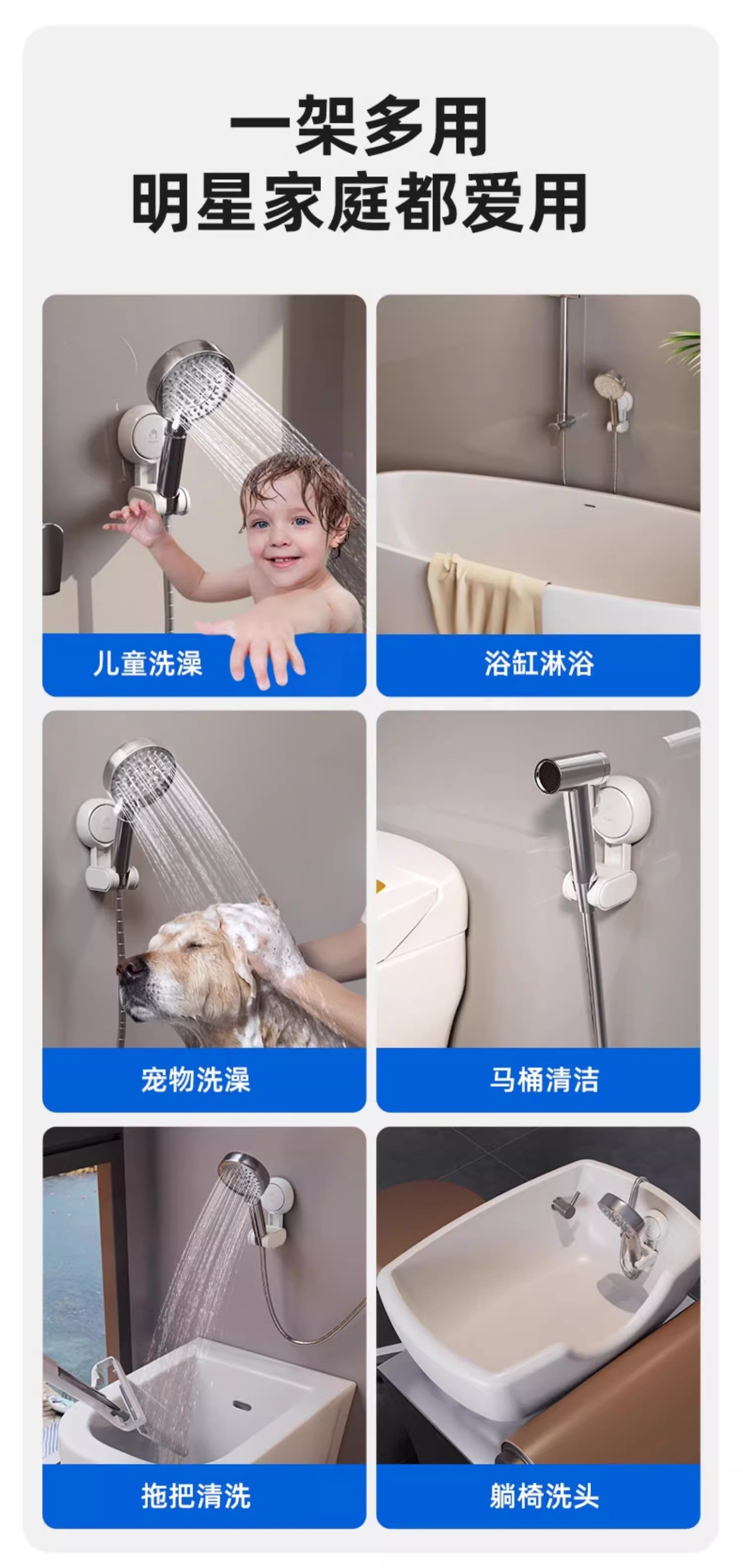 흡착식 샤워기 거치대 욕실 이동식 어린이 샤워기 홀더 고정기 스프레이 노즐 베이스 무타공 흡착식