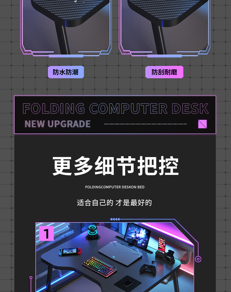 침대 작은 테이블 접이식 노트북 테이블 대학 기숙사 e-스포츠 스타일 탄소 섬유 침대 학습 테이블스토어 가기