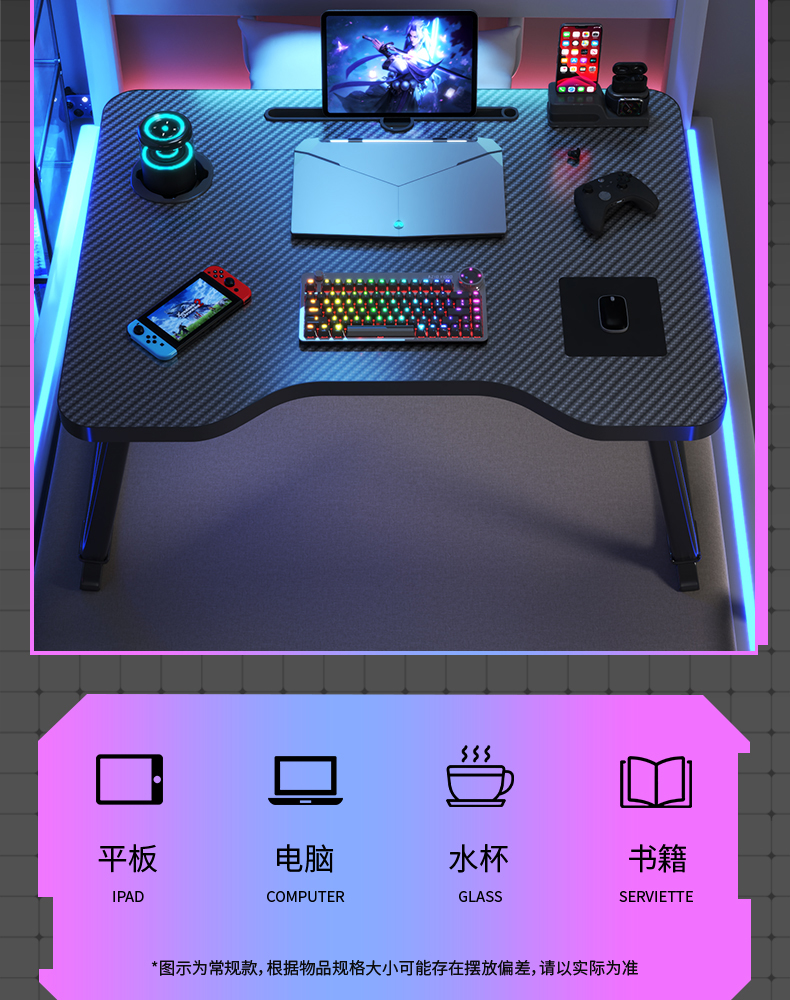 침대 작은 테이블 접이식 노트북 테이블 대학 기숙사 e-스포츠 스타일 탄소 섬유 침대 학습 테이블