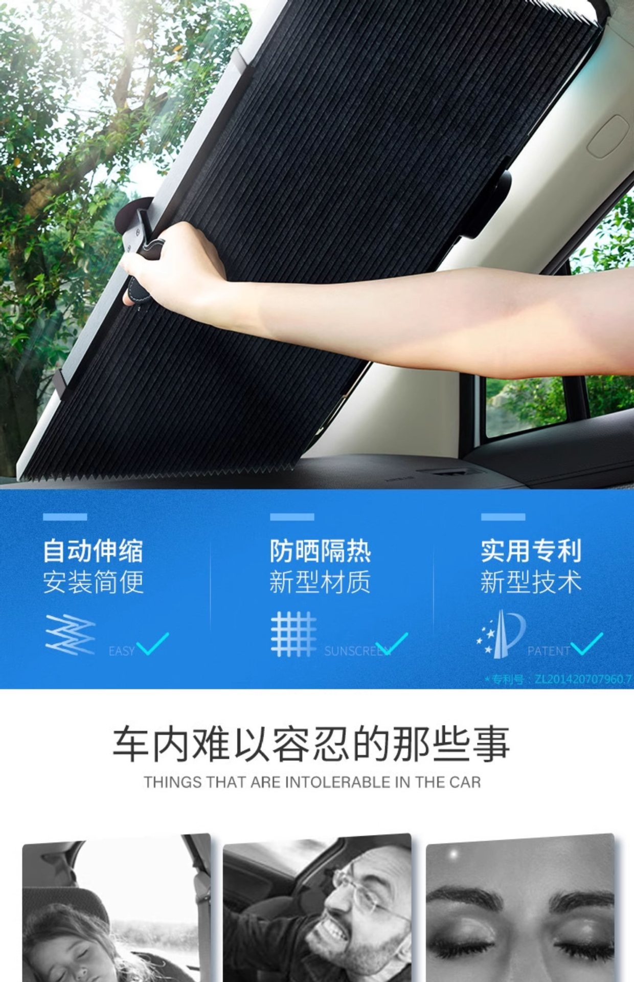 자동차 차양, 단열 및 자외선 차단, 앞 유리창 자동 개폐식 커튼, 여름용 차양, 자동차 용품