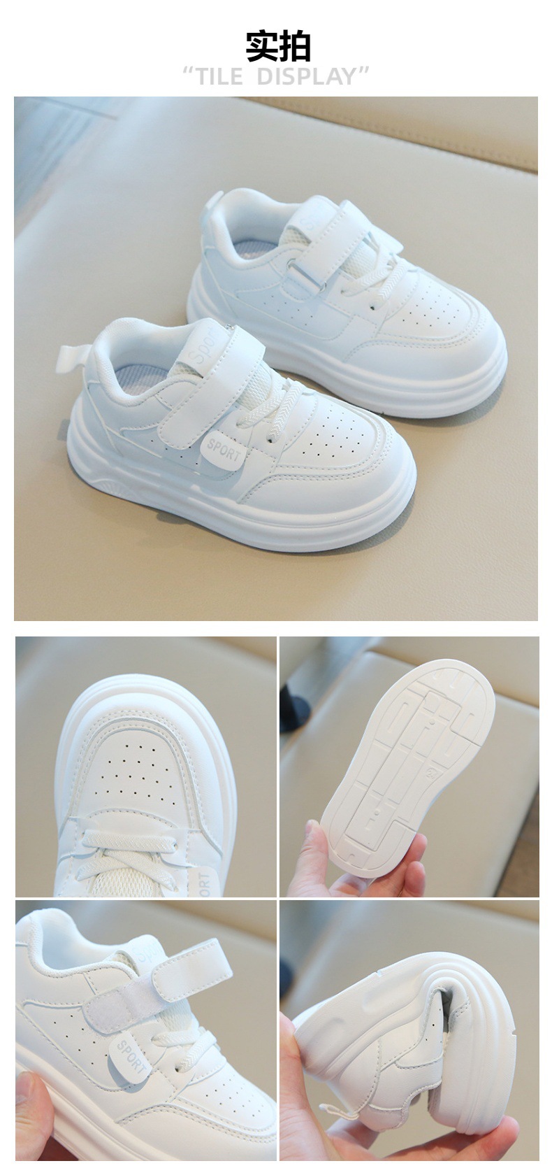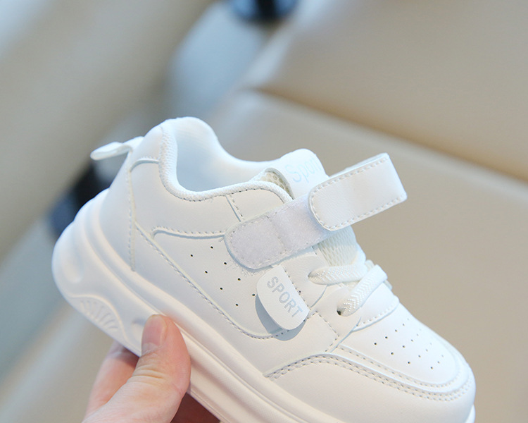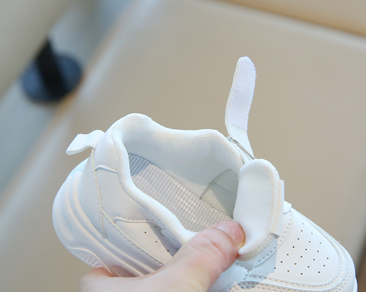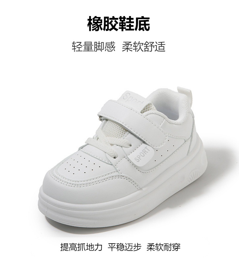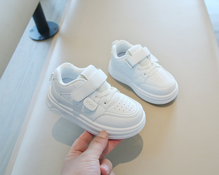 소년 흰색 신발 2025 새로운 단색 다목적 통기성 어린이 캐주얼 신발 벨크로 내마 모성 소녀 스포츠 신발