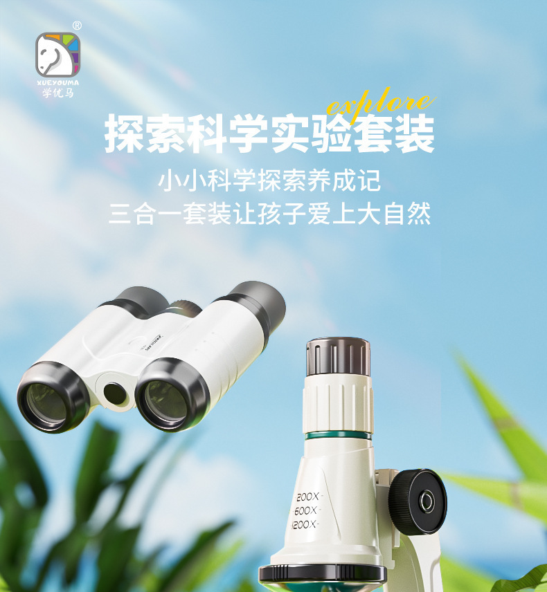 Xueyouma 탐험 과학 실험 세트 현미경 쌍안 고배율 망원경 어린이 교육 장난감 선물스토어 가기
