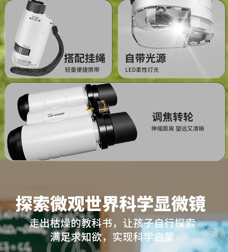Xueyouma 탐험 과학 실험 세트 현미경 쌍안 고배율 망원경 어린이 교육 장난감 선물