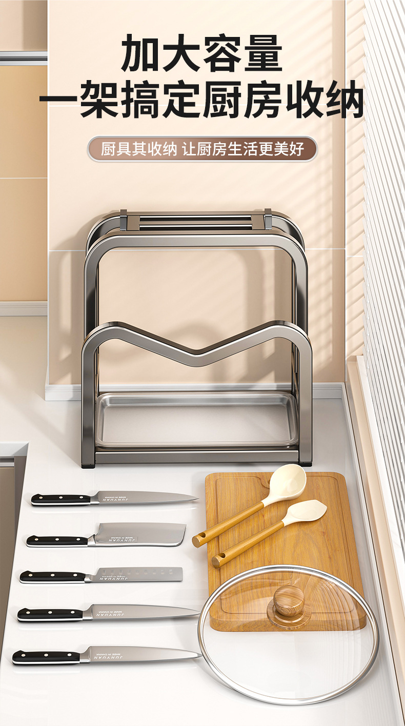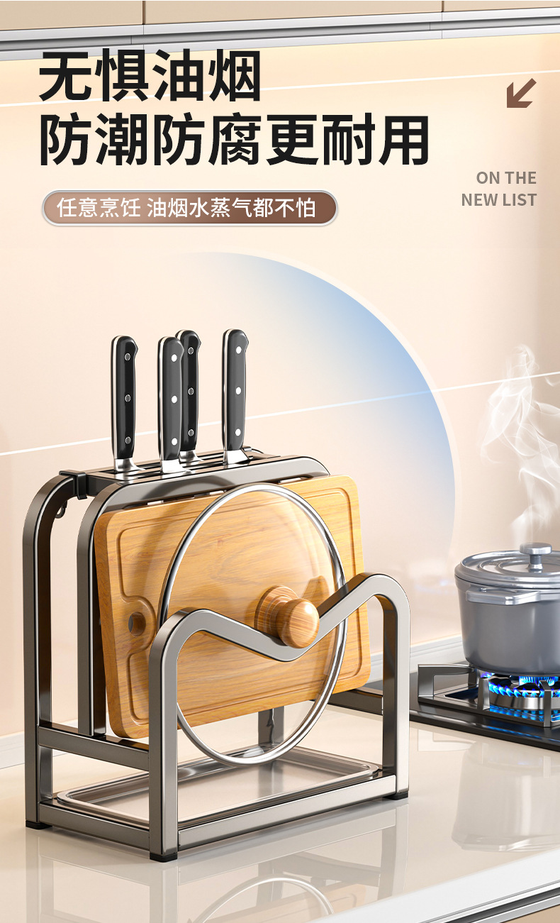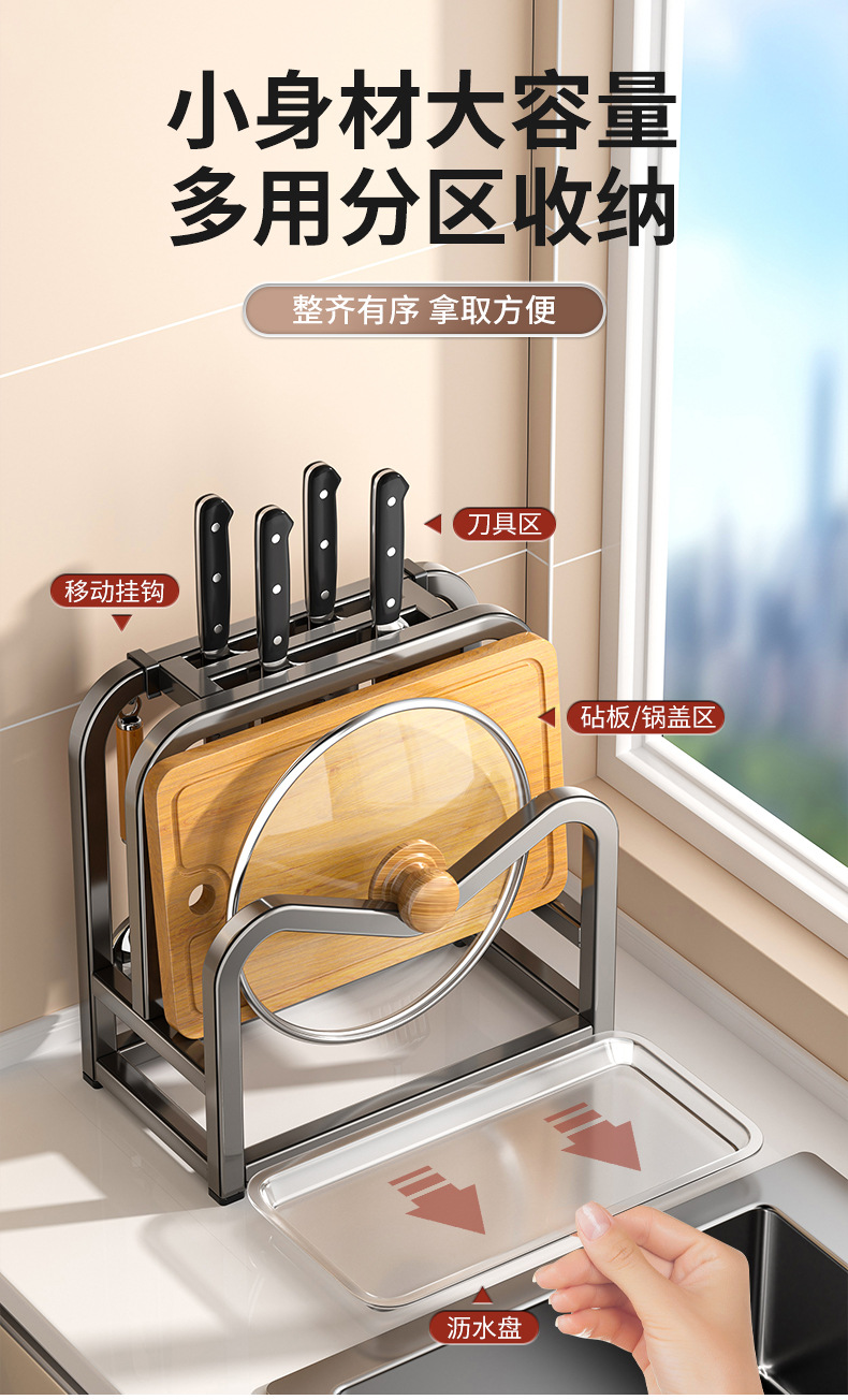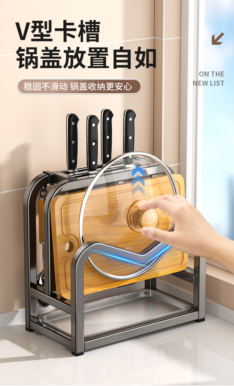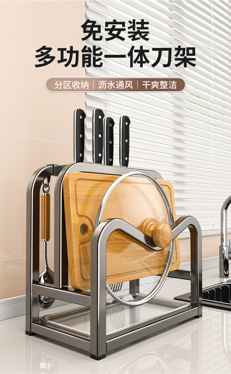 주방칼걸이, 조리대, 도마, 냄비뚜껑, 도마걸이, 일체형 다기능 칼홀더, 수납선반