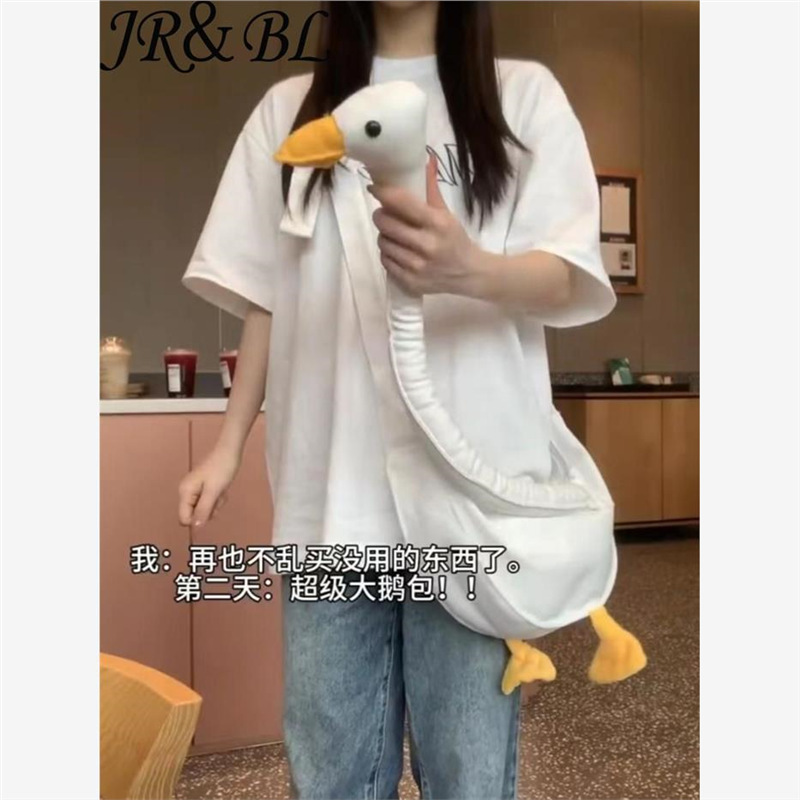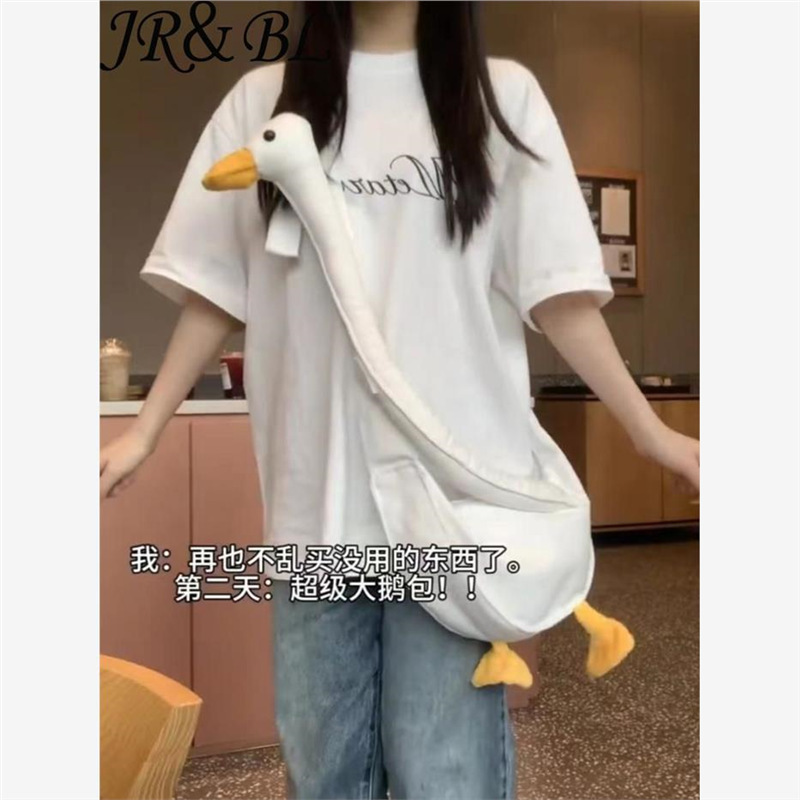 큰 흰색 거위 캔버스 크로스 바디 백 대용량 다목적 만화 가방 소녀 하트 숄더 백 스타일 오리 가방 배낭