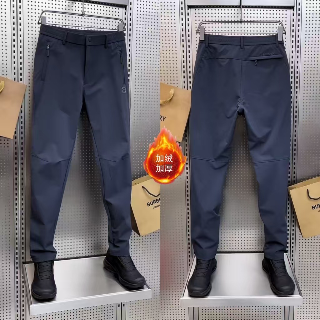 2025 남성 봄, 가을 새로운 야외 스포츠 탄성 소프트 쉘 속건성 충전 바지 패션 캐주얼 바지 고품질 잘 생긴
