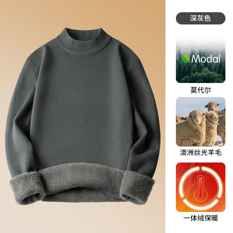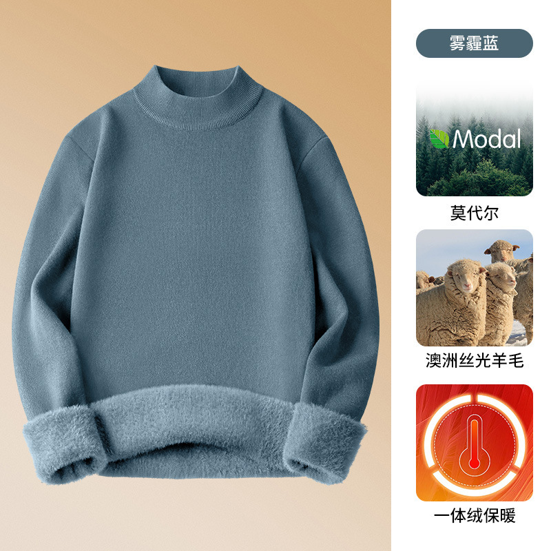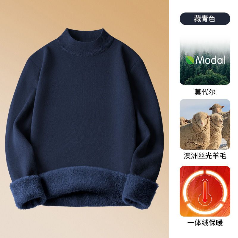 650G 울 모달 하프 터틀넥 스웨터 남성용 새 가을, 겨울 벨벳 두꺼운 따뜻한 이너웨어 남성용스토어 가기