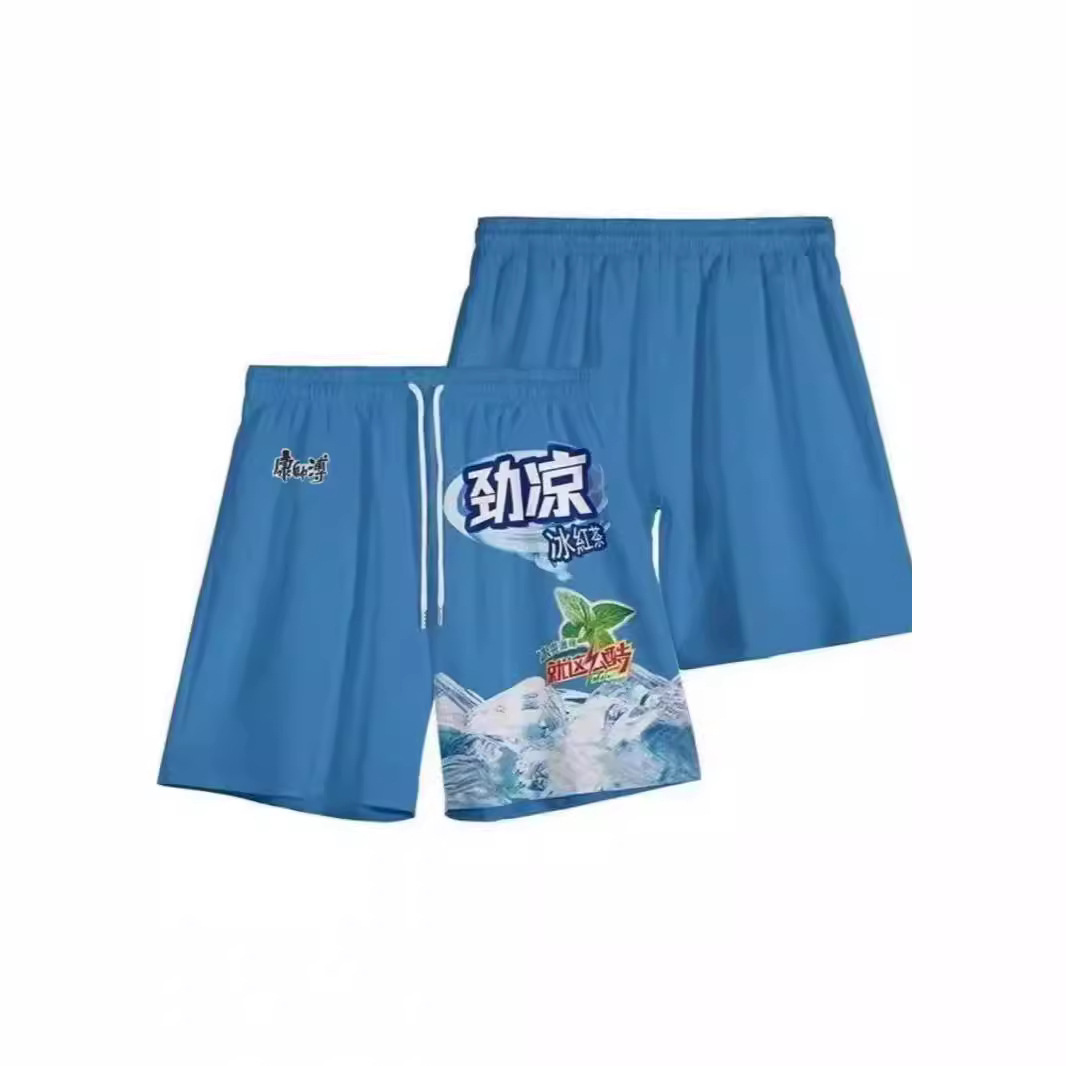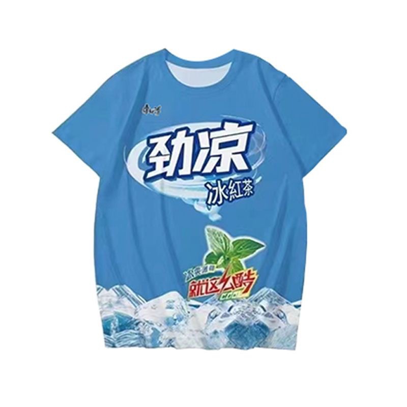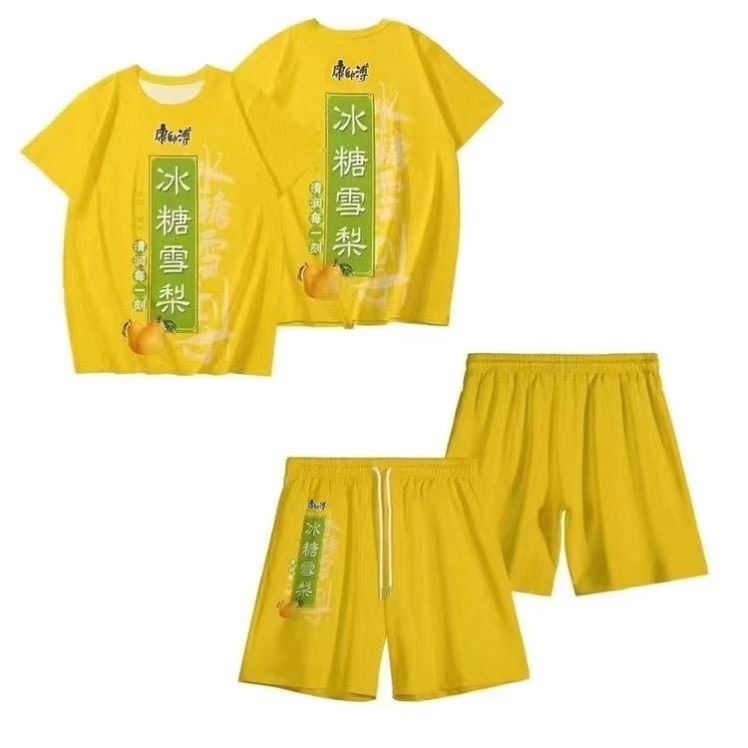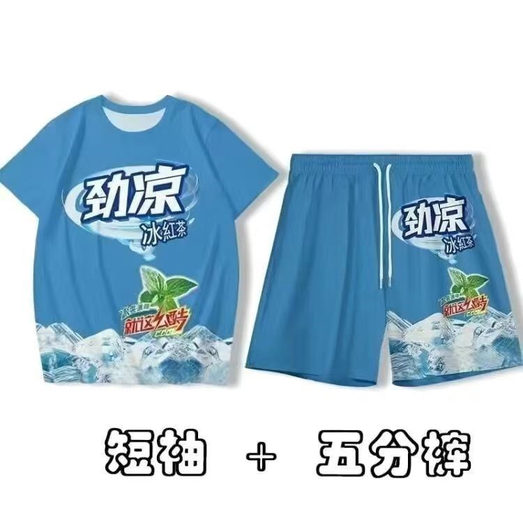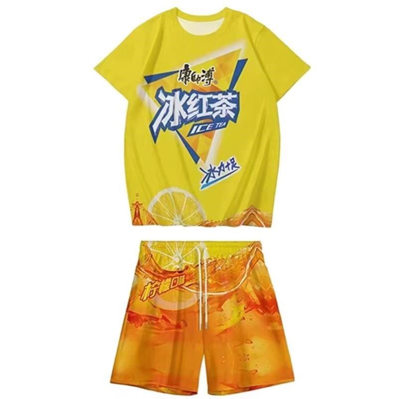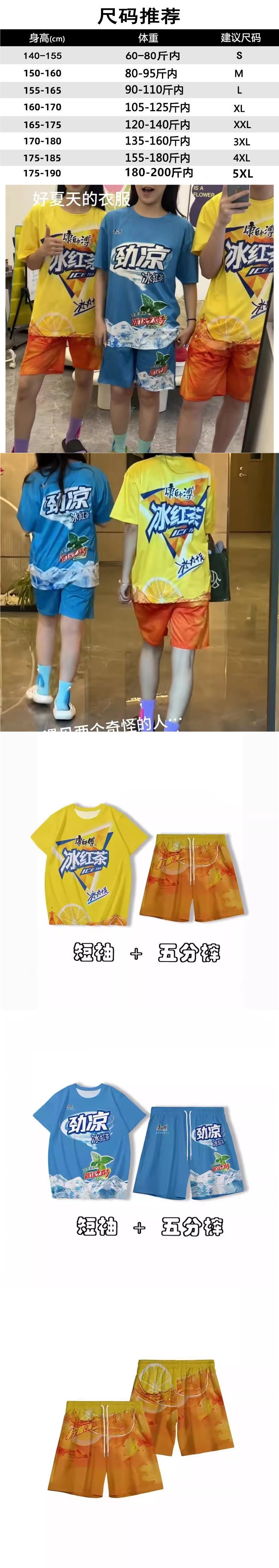 얼음 홍차 반팔 반바지 정장 남성과 소녀를위한 재미있는 모래 조각 잠옷 어린이 성인 추상 옷스토어 가기