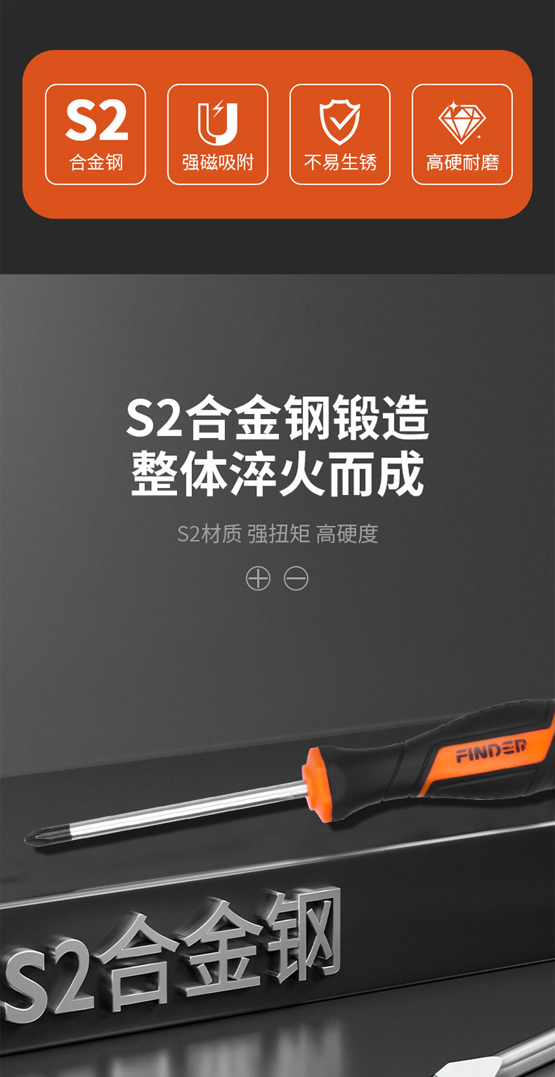 디스커버러 오렌지 블랙 라운드 핸들 강력한 자기 크로스 스크루 드라이버 정밀 미끄럼 방지 핸들 전문 수리 도구 도매스토어 가기