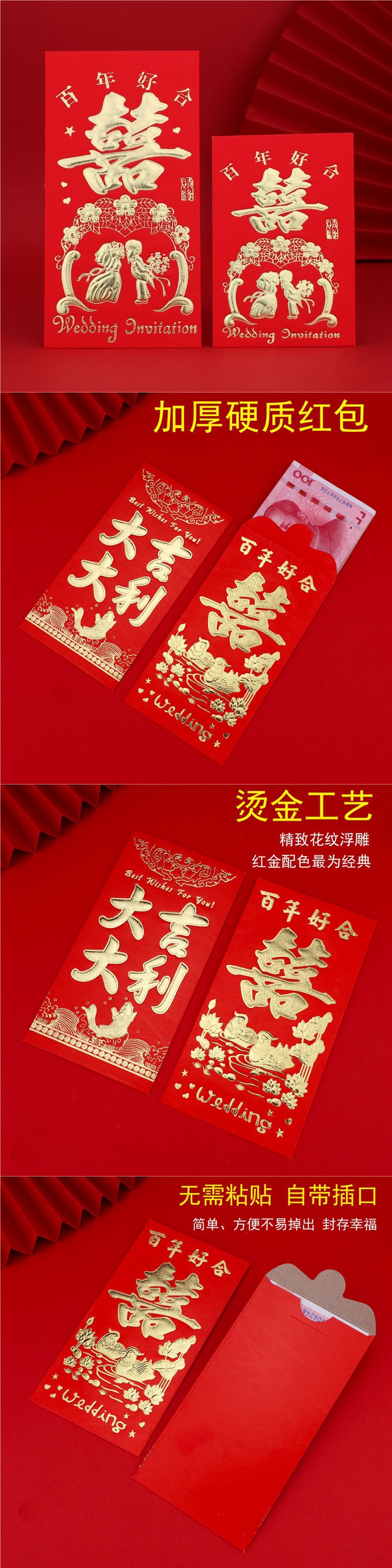 레트로 더블 해피 핫 스탬핑 빨간 봉투 결혼식 금 봉투 하이 엔드 스테이플링스토어 가기