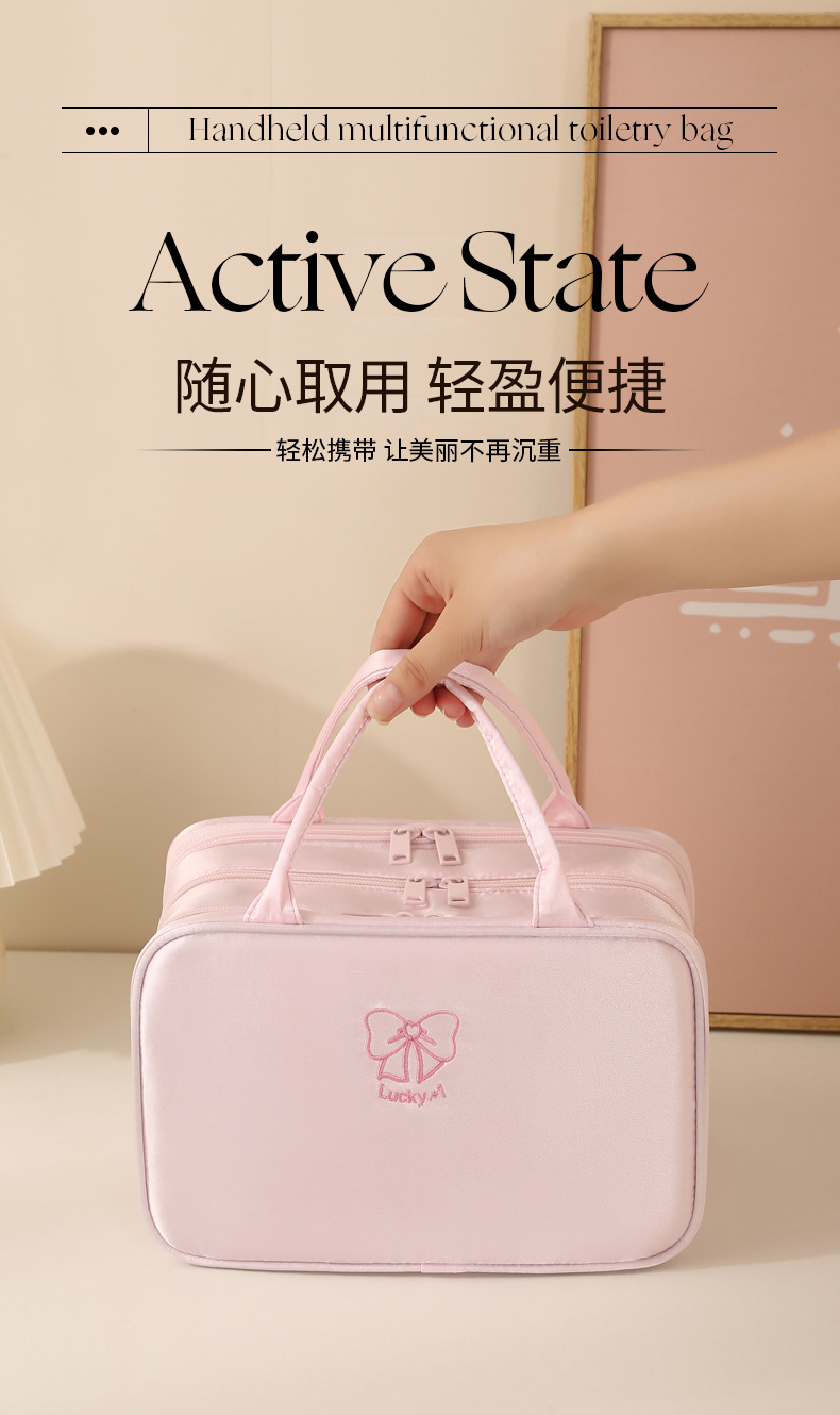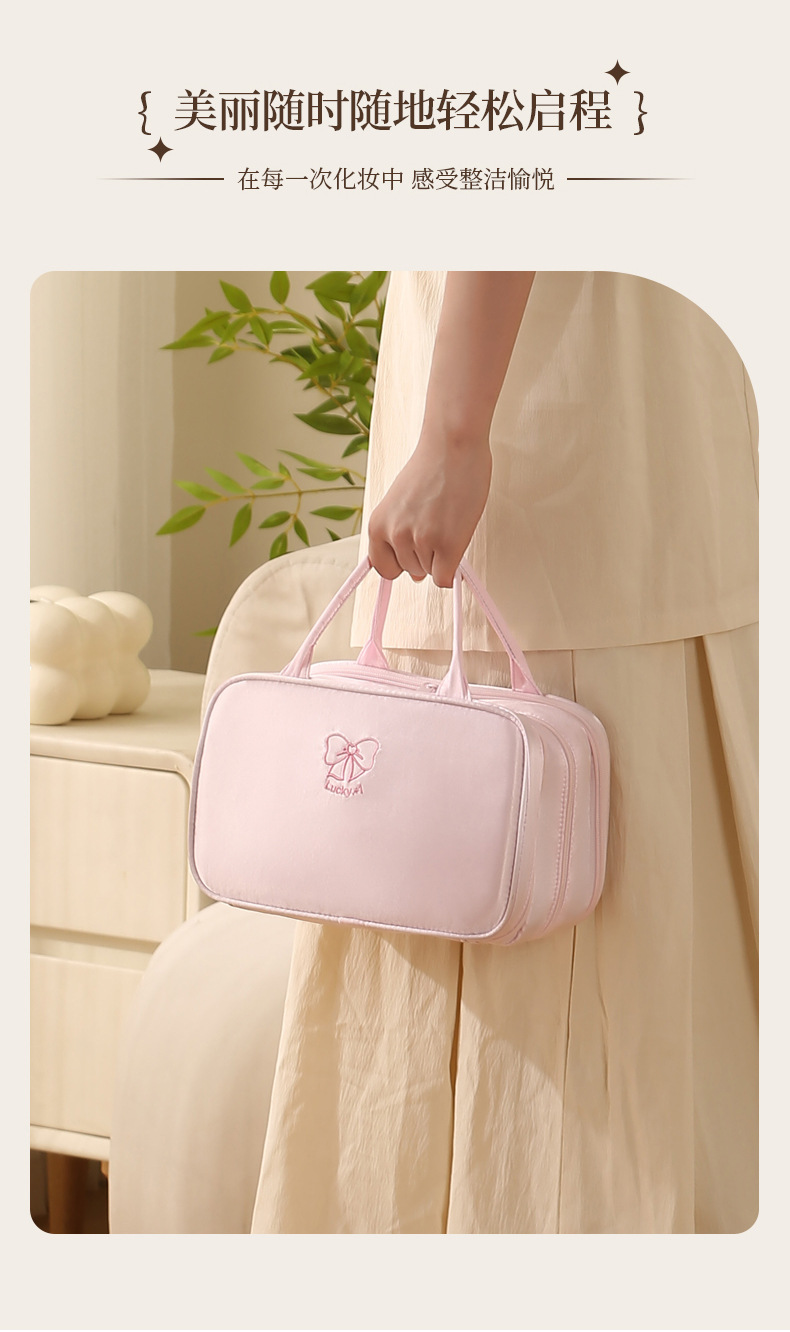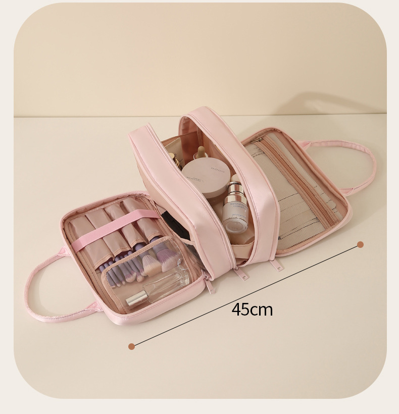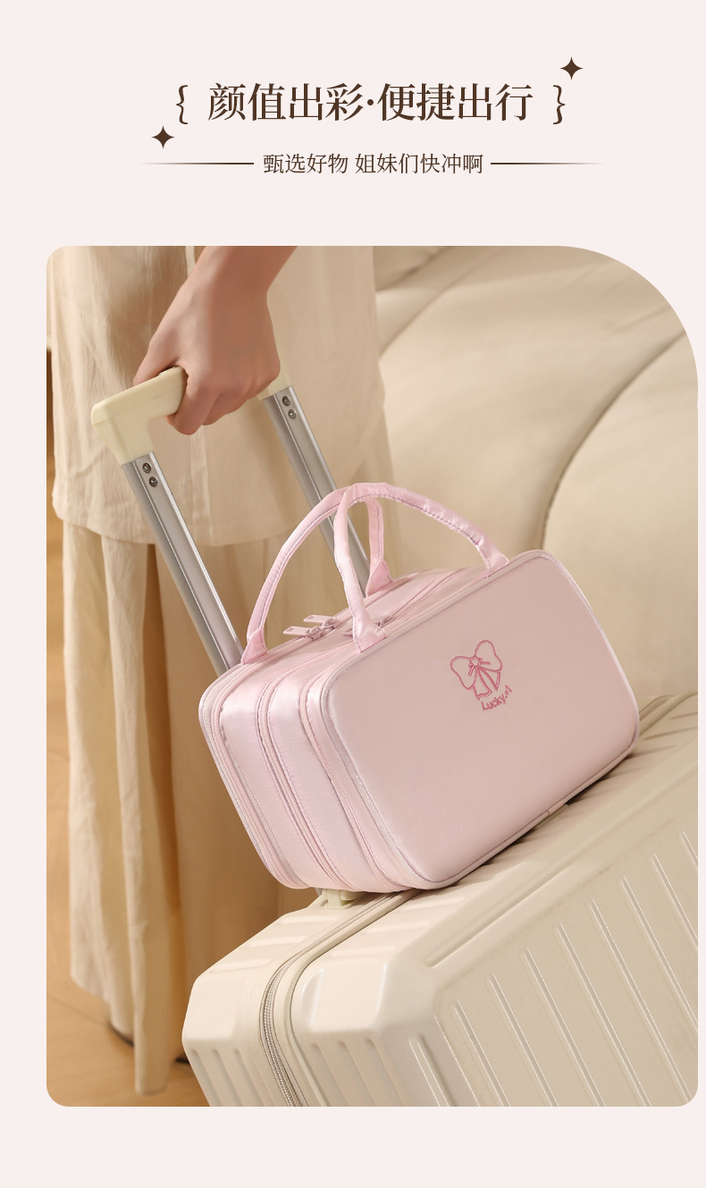 화장품 가방 여성용 휴대용 대용량 여행 더블 지퍼 보관 가방 귀여운 휴대용 파티션 더블 레이어 정리 세면 용품 가방